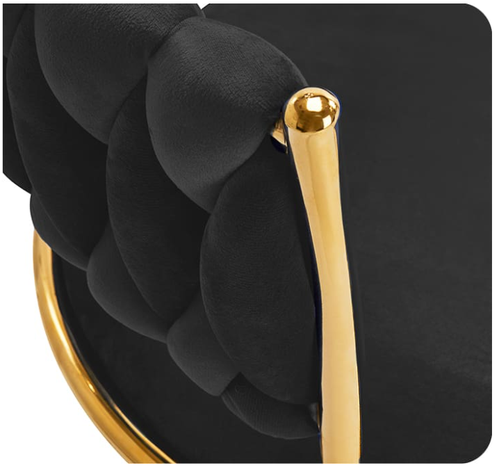 Elegantní kosmetická židle 4Rico QS-GW01G s poutavým výpletem na opěradle a leštěnými prvky ve zlatých odstínech, čalouněná materiálem příjemným na dotek, zapadne do každého interiéru. Nábytek vyniká svou elegancí a je mimořádně všestranný - je ideální pro profesionální salony , včetně kosmetického salonu, nehtového salonu, kanceláře nebo elegantní recepce. Je také ideální pro domácí použití.
