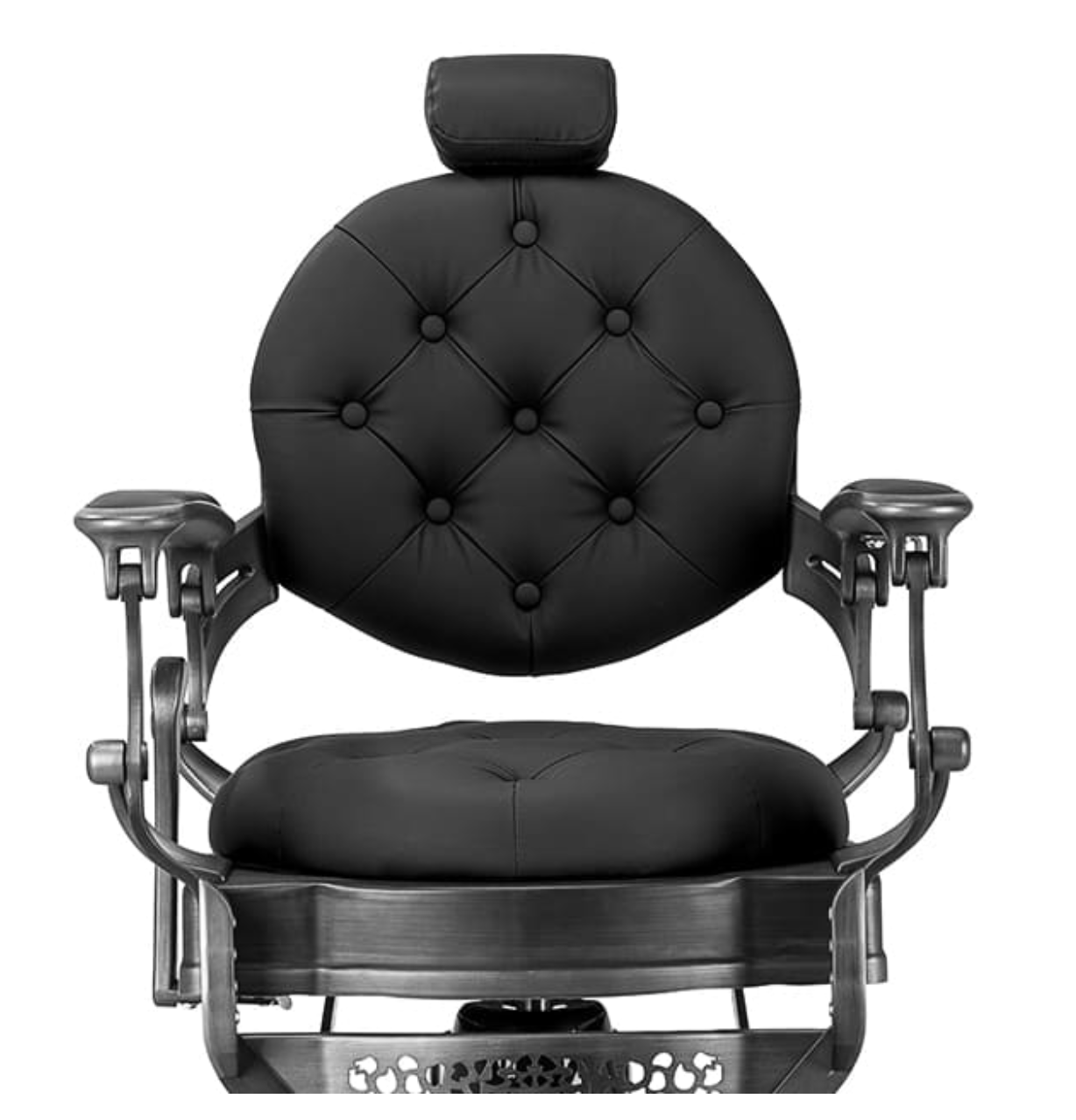 Pevná konstrukce základny zajišťuje stabilitu a vysoký komfort používání. Výplň sedáku je vyrobena z odolné pěny odolné proti deformaci a čalounění je vyrobeno z na dotek příjemné syntetické kůže s matným povrchem, zajišťující odolnost nábytku a jeho pohodlné používání po dlouhou dobu . Díky použitým materiálům je zařízení také odolné proti vlhkosti, odolné a snadno se čistí . Černý potah s prošíváním a ozdobnými knoflíky i zdobená podnožka mu dodávají jedinečný charakter. Křeslo s charakteristickým designem odkazujícím na vintage styl dokonale zapadne do atmosféry holičských salonů a podtrhne jejich jedinečnou atmosféru.