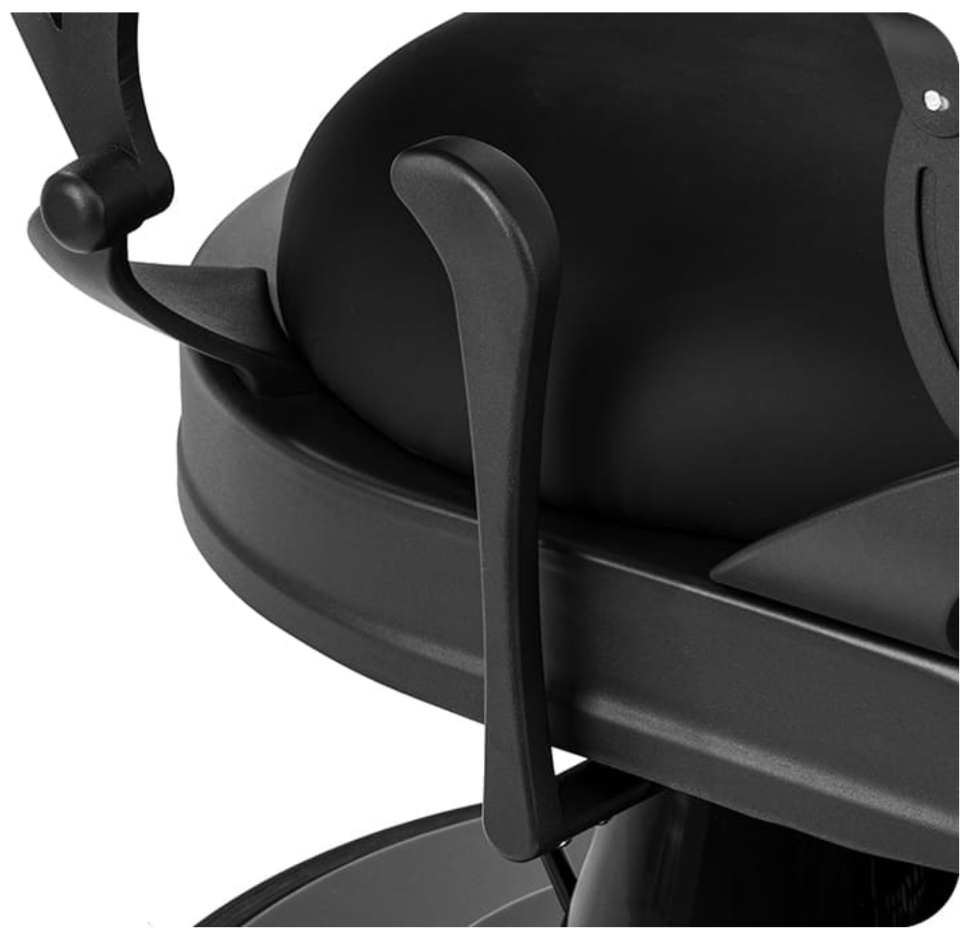 Pohodlné sedátko s pěnovou výplní zaručuje klientovi pohodlí při různých službách. Tvarovaná zádová opěrka vám umožňuje zaujmout pohodlnou polohu a poskytuje vynikající podporu zad , což je důležité zejména při delších procedurách. Díky mechanismu plného otáčení židle je práce efektivnější a pohodlnější. Polstrované područky umístěné ve vhodné výšce umožňují správné umístění klientových ramen - to zabraňuje schování hlavy do ramen nebo prohýbání zad - výrazně usnadňuje provádění přesných ošetření. Držák ručníku pod loketní opěrkou výrazně ovlivňuje efektivitu práce. Otvor mezi opěradlem a sedákem usnadňuje udržování čistoty.