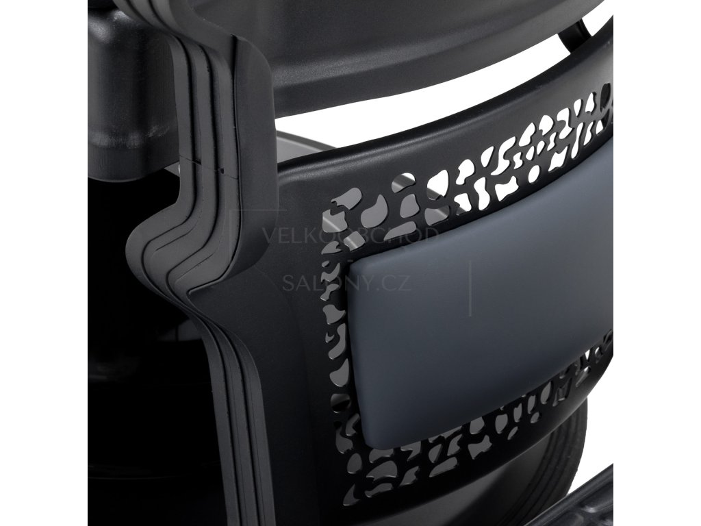 Otevřený prostor mezi opěradlem a sedákem usnadňuje čištění vlasů a údržbu čistoty mezi klienty.