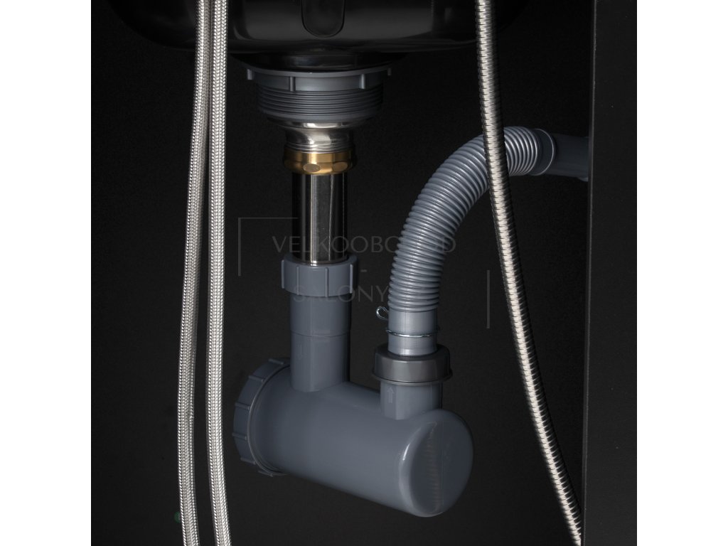 Celý mycí box je vyroben z kvalitních desek v sytě černém odstínu s matným povrchem, který působí elegantně a moderně. Styl doplňuje chromovaná armatura – baterie, sprchová hlavice a flexibilní hadice jsou součástí balení.