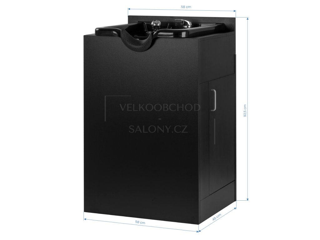 Hluboká misa z odolného plastu v černé barvě je navržena tak, aby omezila rozstřik vody i přípravků. Díky ergonomickému tvaru a vyprofilovanému kołnieri s měkkou silikonovou opěrkou zůstává hlava klienta pohodlně podepřená po celou dobu mytí.