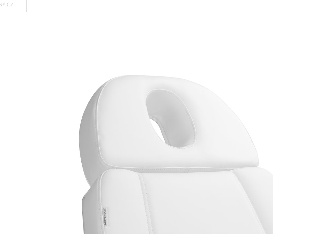 Široké sedadlo s kvalitní pěnovou výplní zajišťuje komfort i při dlouhotrvajících procedurách. Odnímatelné a otočné područky (180°) usnadňují usazení klienta a umožňují volný přístup ze všech stran. Výsuvná a nastavitelná opěrka hlavy je ideální i pro vyšší klienty.