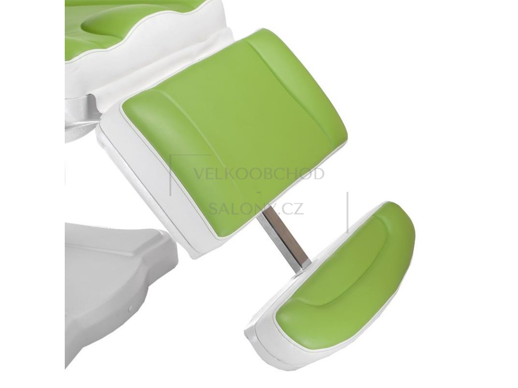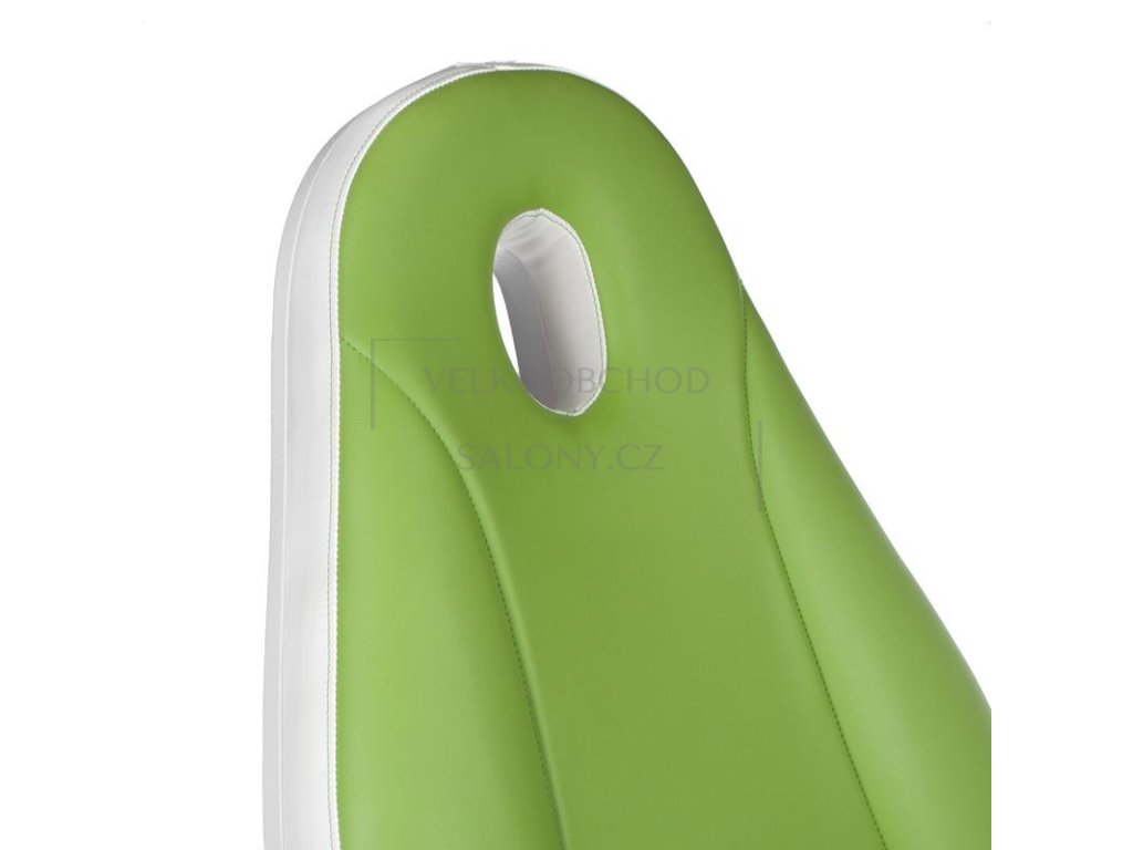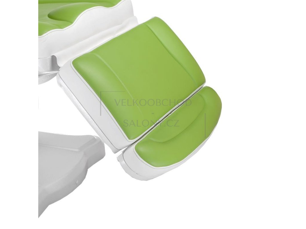 Polštáře z vysoce kvalitní elastické pěny poskytují vynikající pohodlí i při delších procedurách, zatímco čalounění z ekologické kůže v elegantní zelené barvě je odolné vůči vlhkosti a snadno se udržuje v čistotě.