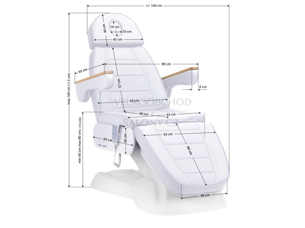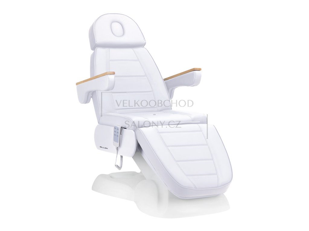 - Široké sedadlo s pevnou pěnovou výplní a čalouněním ze syntetické kůže zajišťuje maximální pohodlí i při delších procedurách. Otočné a odnímatelné područky usnadňují nastupování a poskytují pohodlný přístup pro kosmetičku. Výsuvná opěrka hlavy a možnost úplného sklopení do polohy lehátka z něj činí univerzální zařízení vhodné pro ošetření obličeje i těla – včetně kosmetiky, fyzioterapie či tetování.