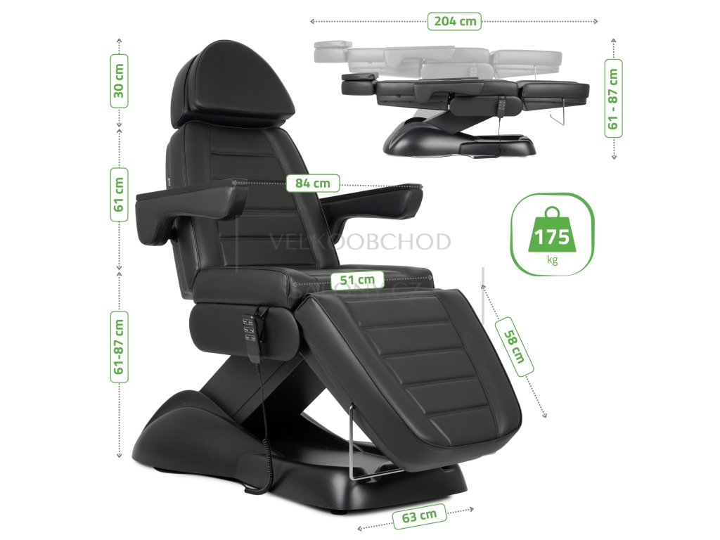 Nastavení: elektrické (výška, opěrka zad, opěrka nohou)