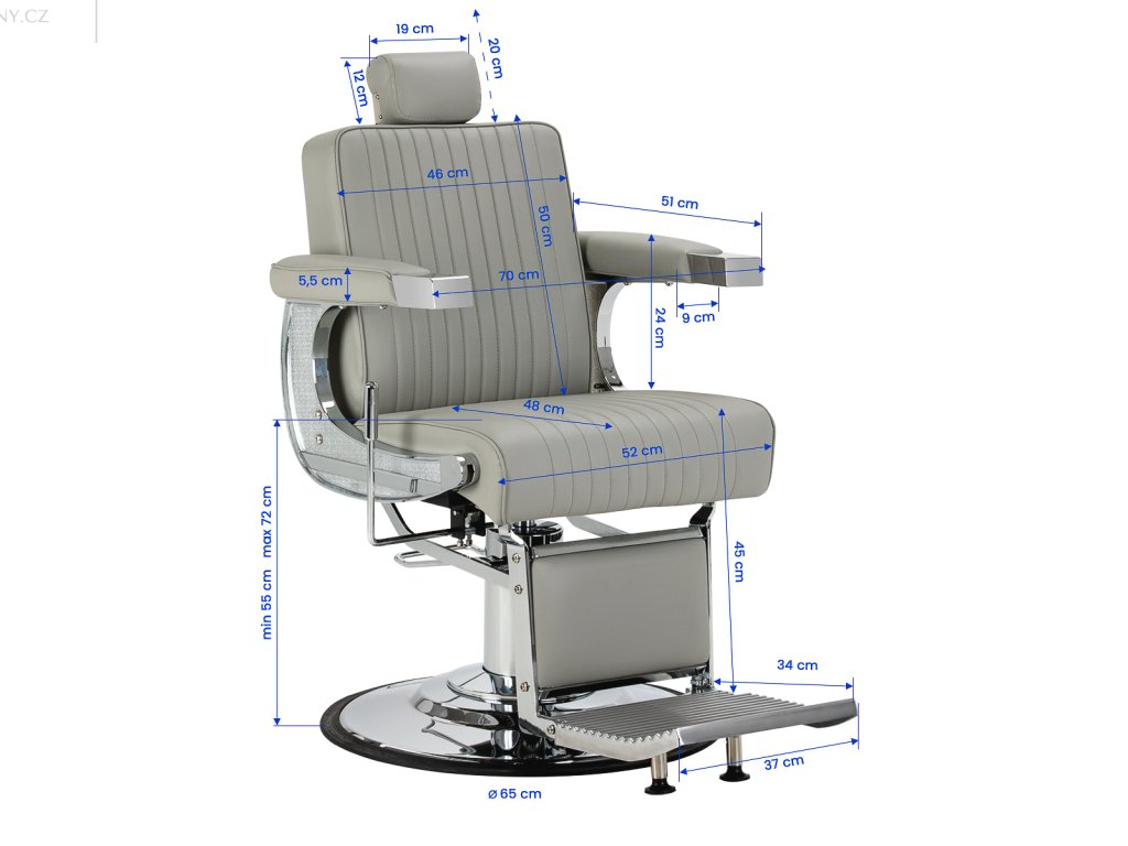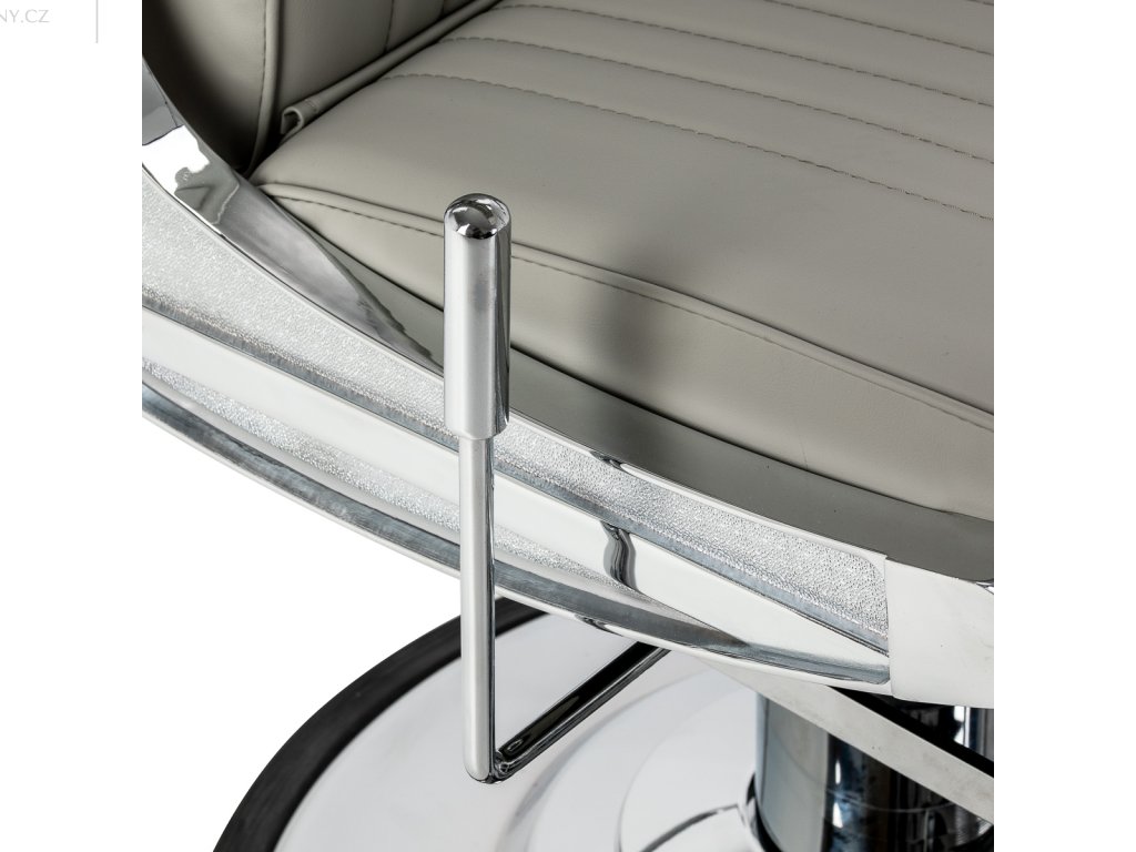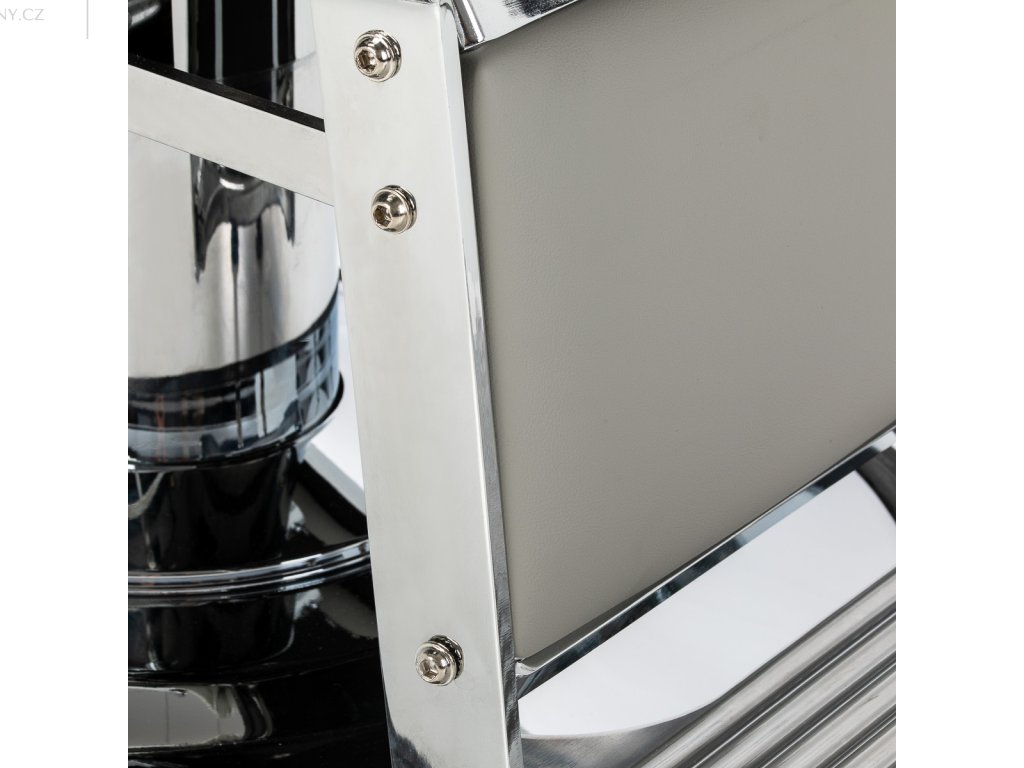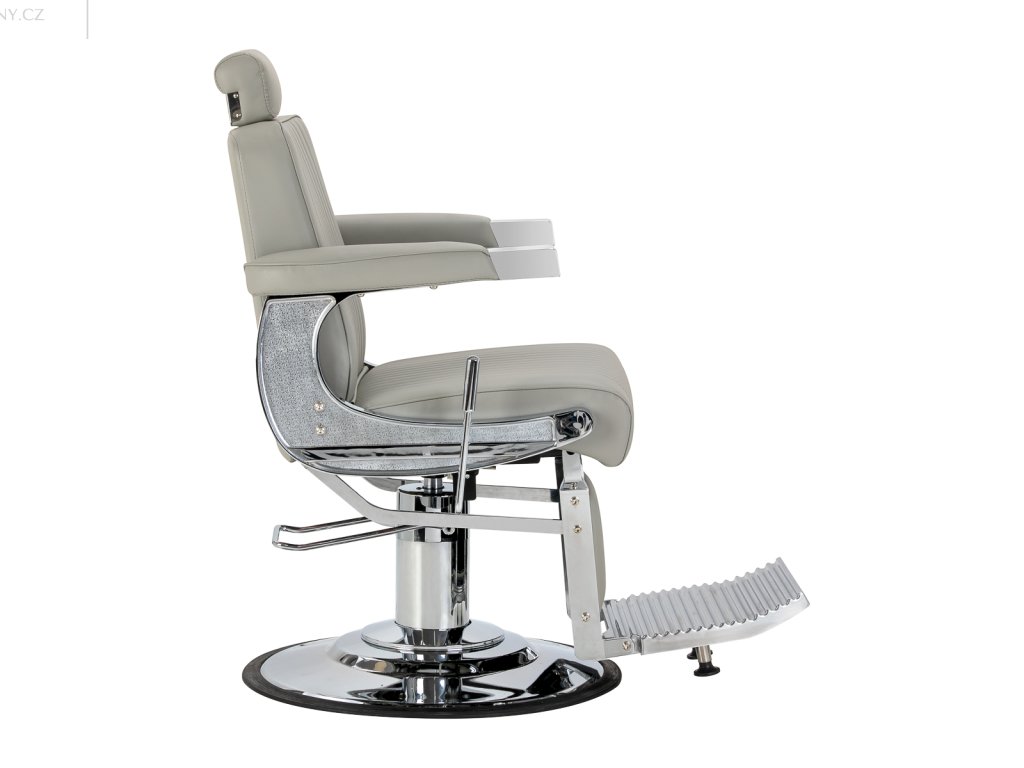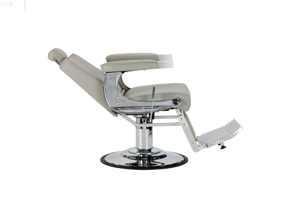 Holičské barber křeslo Cardinal – šedé je profesionální barber křeslo určené pro každodenní provoz v holičstvích a barbershopech. Konstrukce křesla je postavena na pevné chromové základně, která zajišťuje vysokou stabilitu při práci a bezpečné používání i při plném zatížení.