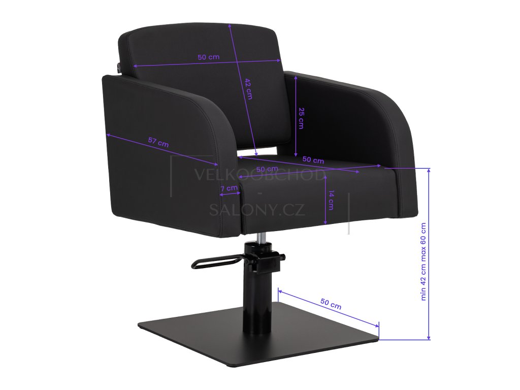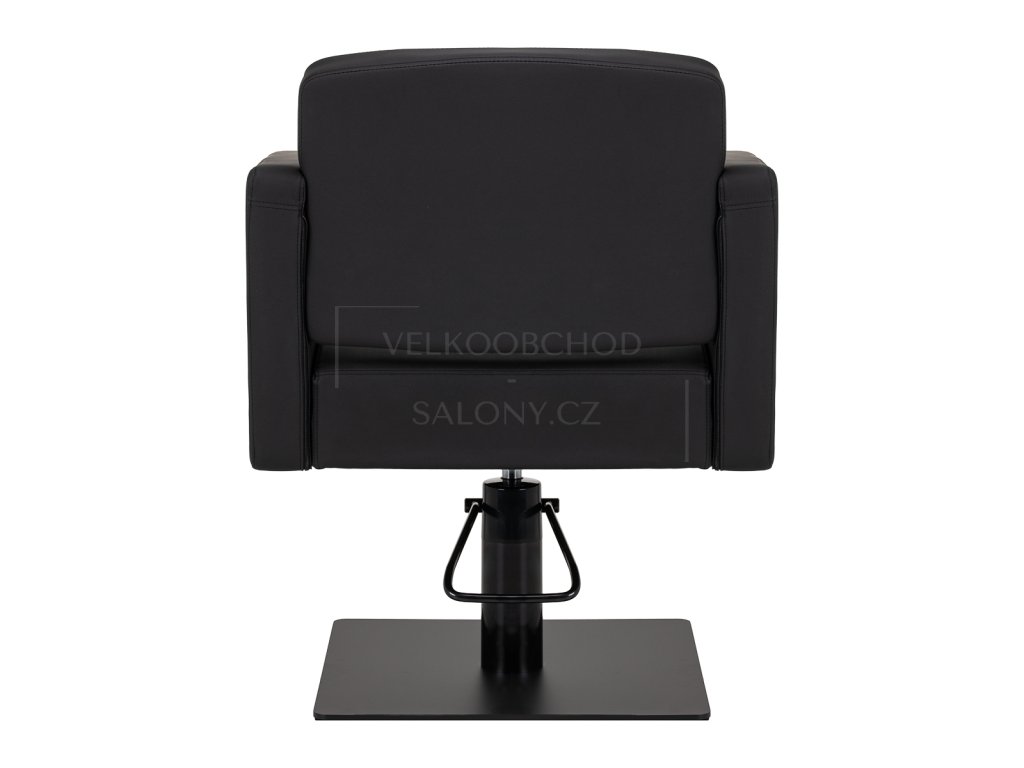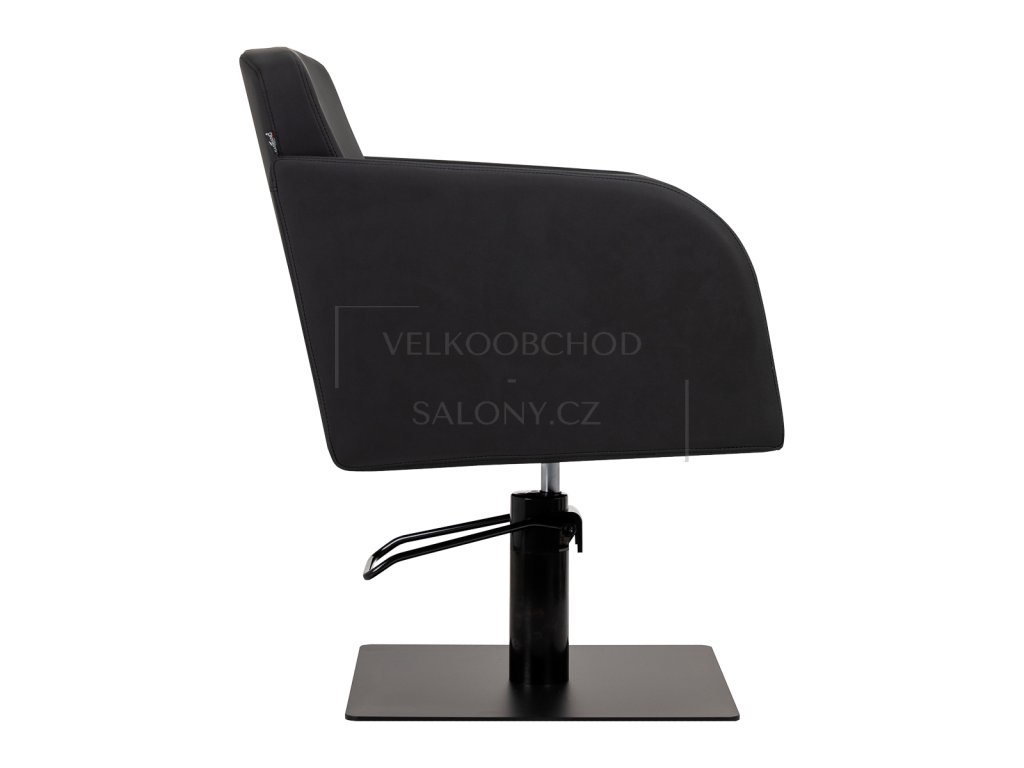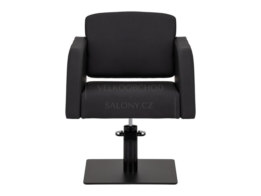Kadeřnické křeslo Aria - černé s hydraulickým zdvihem a černou čtvercovou základnou spojuje minimalistický design s funkčností a vysokým komfortem. Díky nosnosti až 130 kg a odolným materiálům je ideální volbou pro každodenní profesionální provoz.