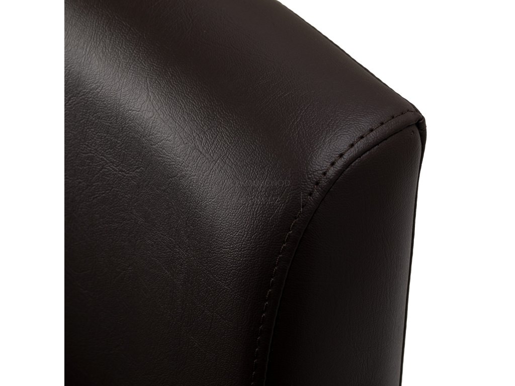 Stabilní kruhová základna v černém provedení zajišťuje bezpečné používání a pevnost i při vyšším zatížení. Křeslo má nosnost až 130 kg, což jej činí vhodným pro široké spektrum klientů. Čalounění z odolné syntetické kůže v hnědém odstínu je příjemné na dotek, odolné proti vlhkosti a velmi snadné na údržbu, což splňuje požadavky profesionálního salonního provozu.