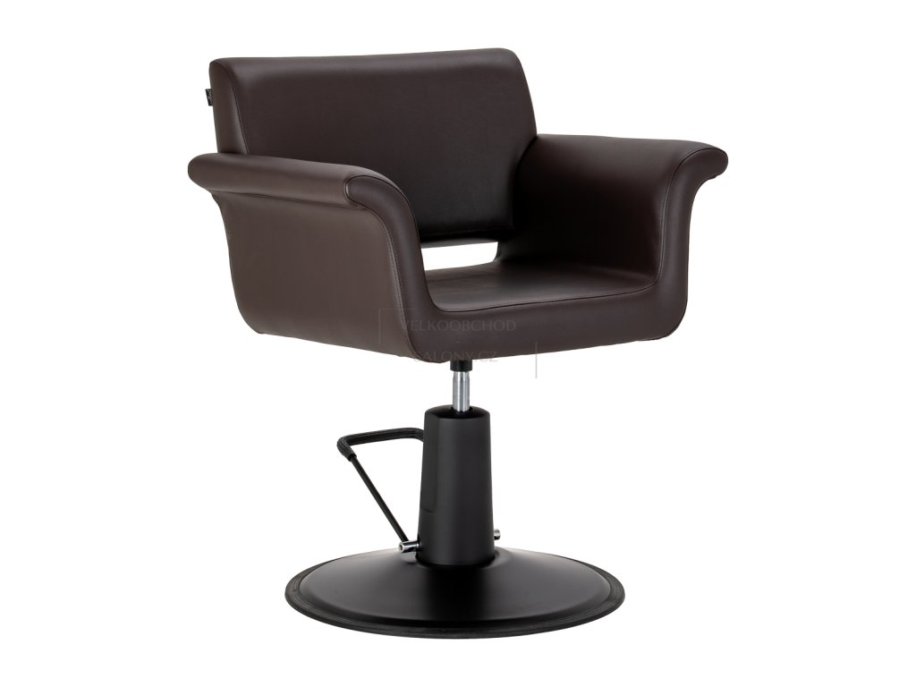 Kadeřnické křeslo Aurelian – hnědé s černou základnou