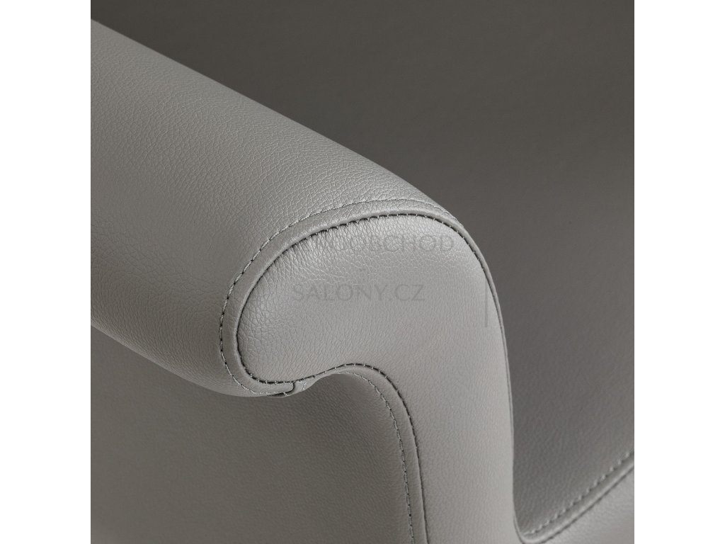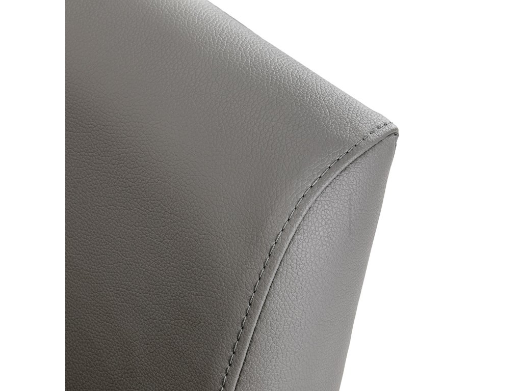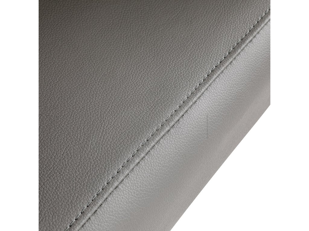 Kombinace šedé syntetické kůže a černé kulaté základny vytváří elegantní kontrast, který dodá každému salonu profesionální charakter. Povrch je odolný proti vlhkosti a snadno se čistí, takže křeslo si udrží moderní vzhled po mnoho let.