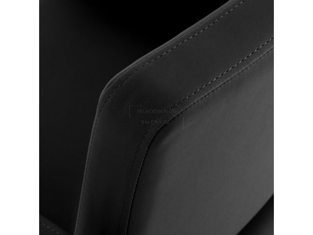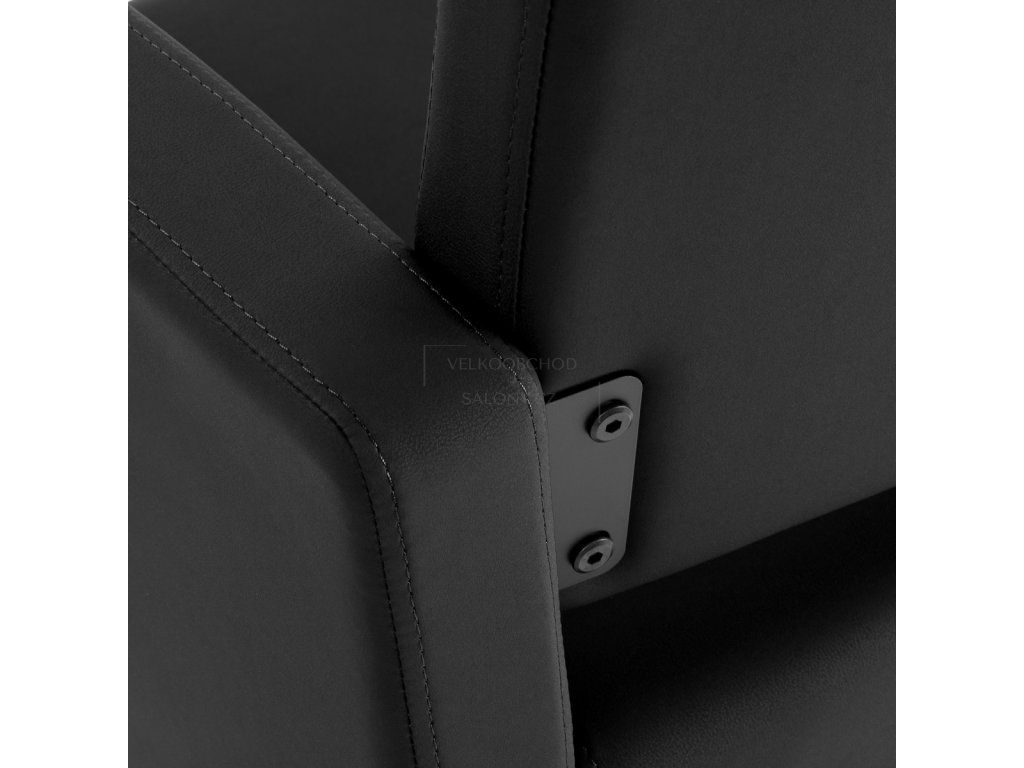 Stabilní čtvercová základna v matné černé barvě zajišťuje pevnost a bezpečné používání i při vyšším zatížení. Křeslo má nosnost až 130 kg a je vhodné pro široké spektrum klientů. Sedák je vyplněn tvarově stálou pěnou, zatímco čalounění ze syntetické kůže v černém odstínu je příjemné na dotek, odolné vůči vlhkosti a velmi snadné na údržbu.
