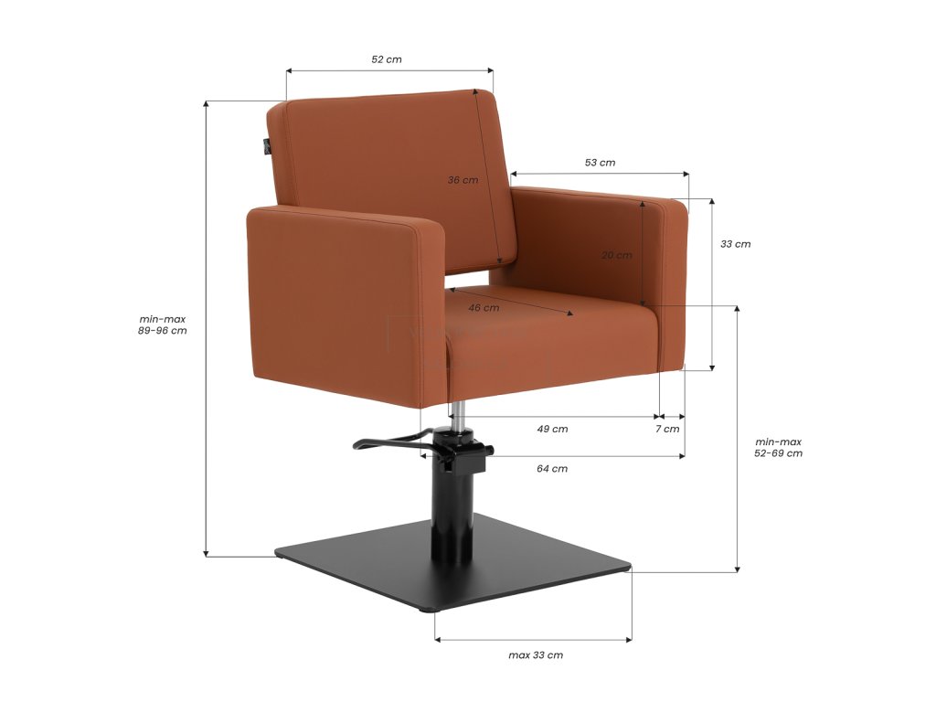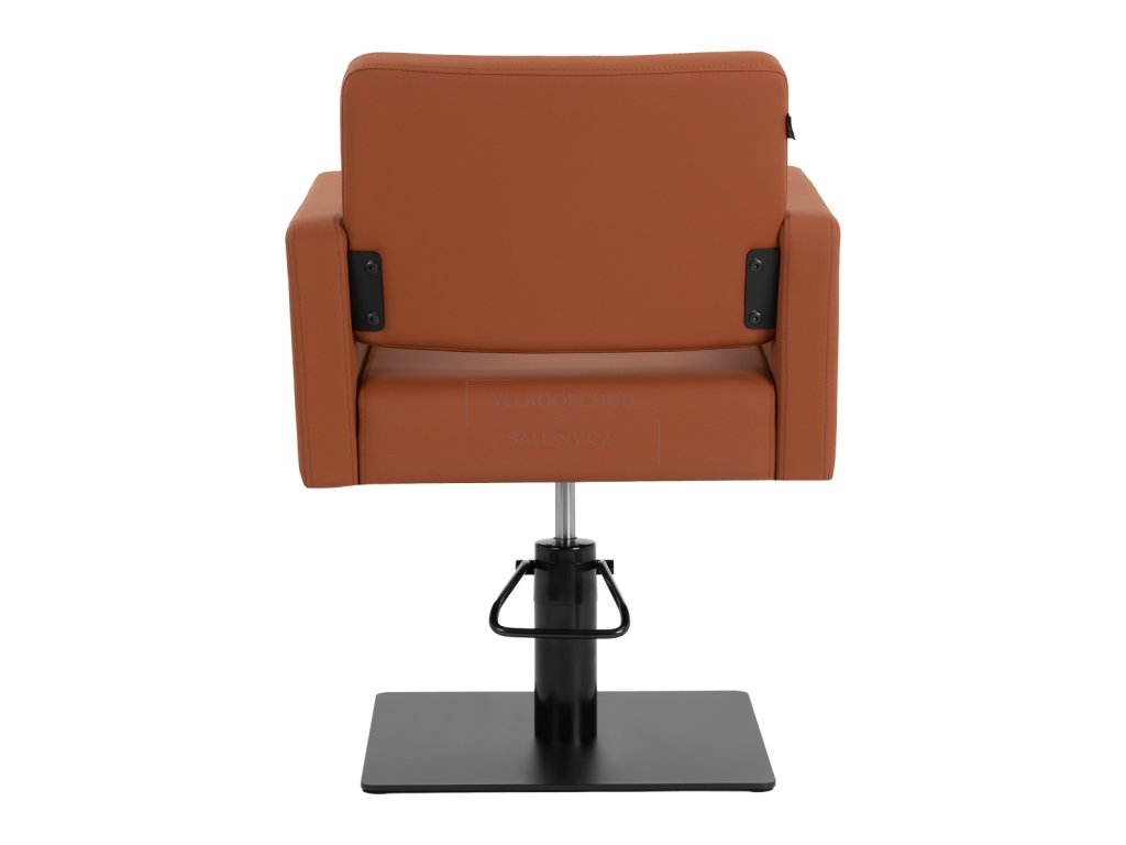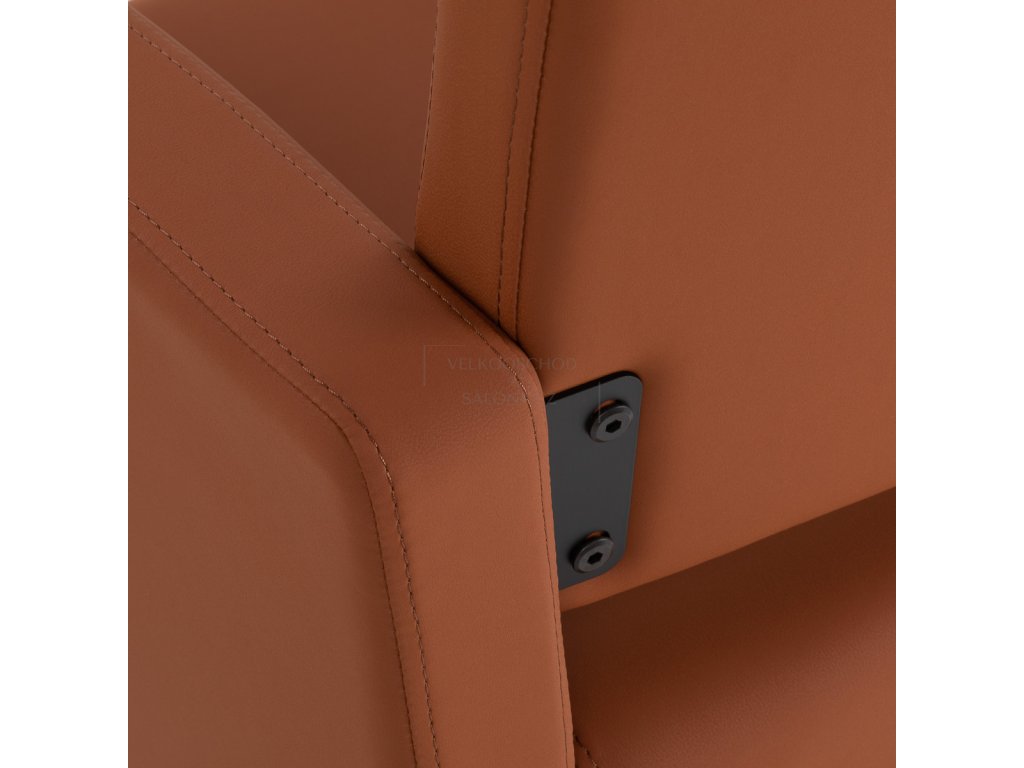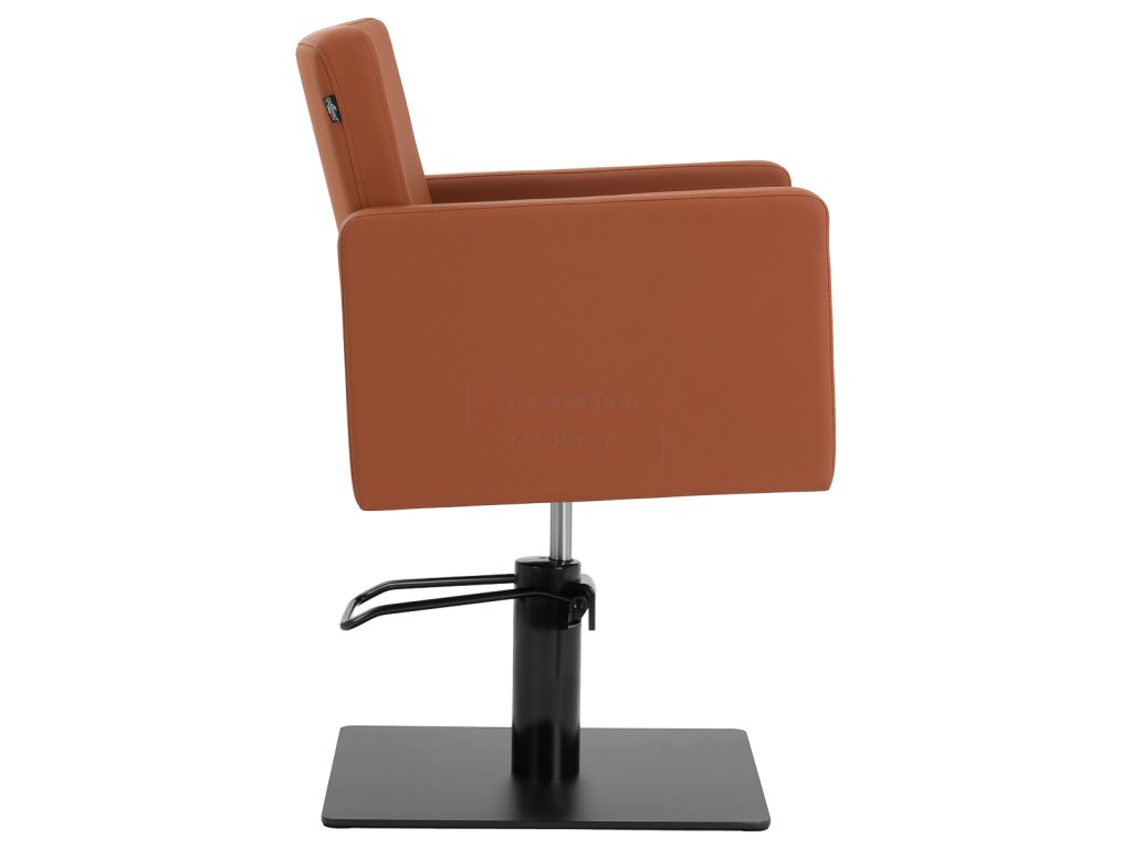 Stabilní čtvercová základna v matném černém provedení zajišťuje pevnost a bezpečné používání i při vyšším zatížení. Křeslo má nosnost až 130 kg a je vhodné pro široké spektrum klientů. Sedák je vyplněn tvarově stálou pěnou, zatímco čalounění ze syntetické kůže v hnědém odstínu je příjemné na dotyk, odolné vůči vlhkosti a velmi snadné na údržbu.