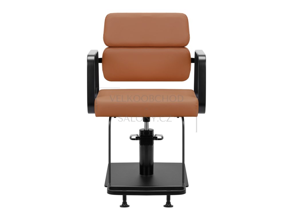 Pohodlné sedadlo je vyplněné odolnou pěnou, která dobře drží tvar, a čalounění z příjemné syntetické kůže je odolné vůči vlhkosti a snadno se udržuje. Kovové područky pomáhají klientovi uvolnit ramena a nehrbit se, což je důležité pro správné držení hlavy při stříhání. Stylový podnožek poskytuje stabilní oporu nohou.