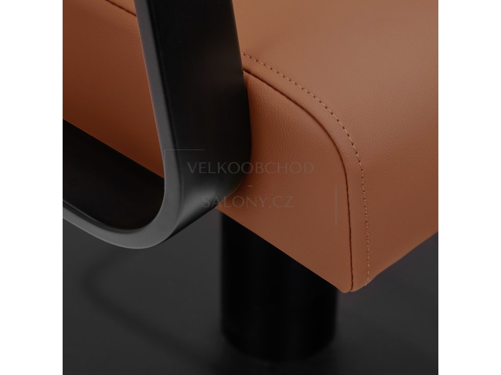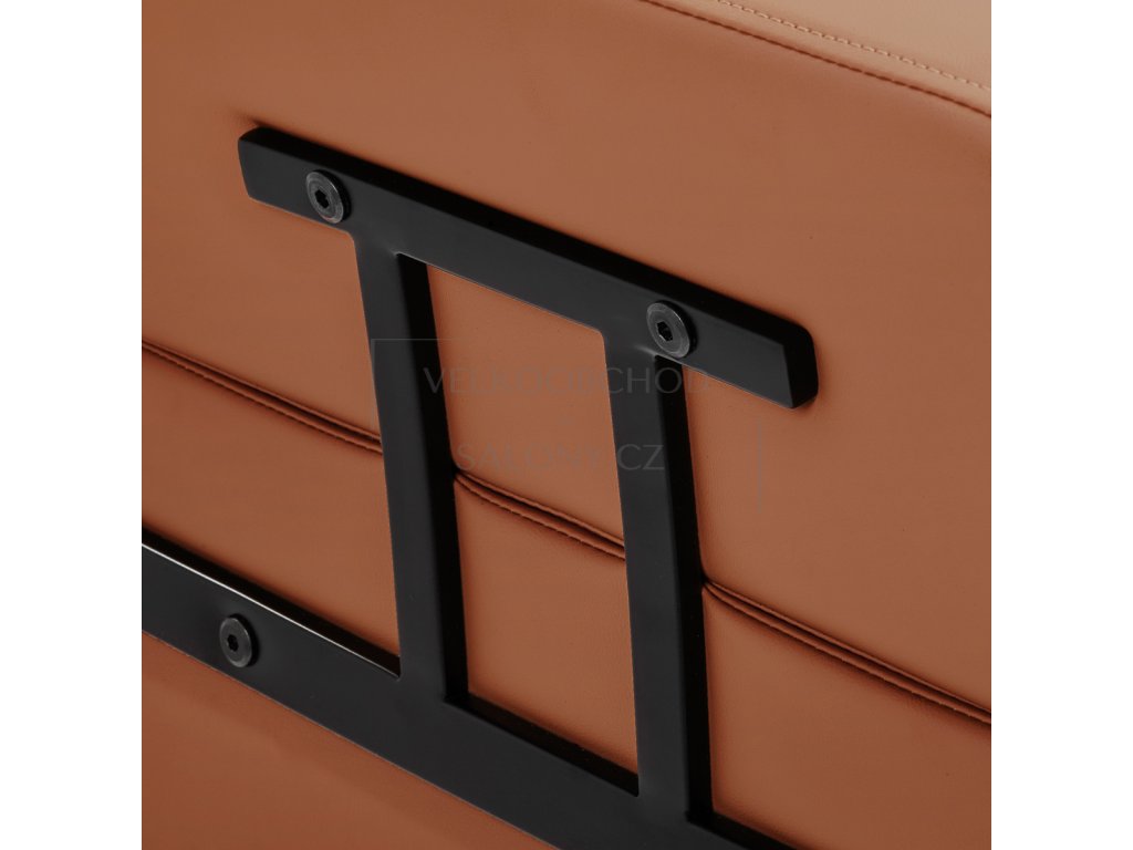 Opěradlo je tvarované pro maximální komfort a podporuje správné držení zad, což ocení klienti zejména při delších procedurách. Velkou výhodou je otevřený prostor mezi opěrkou a sedákem, díky kterému je velmi snadné odstranit vlasy a udržet pracovní místo čisté.