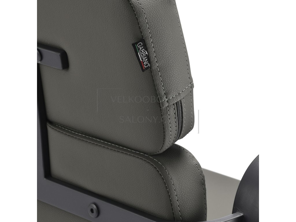 Praktický otvor mezi opěrkou a sedákem usnadňuje odstraňování vlasů a udržování čistoty. Pohodlné sedadlo s výplní z vysoce kvalitní pěny a čalounění ze syntetické kůže v šedých tónech zajistí dlouhou životnost, odolnost proti vlhkosti a komfort i při delších procedurách.