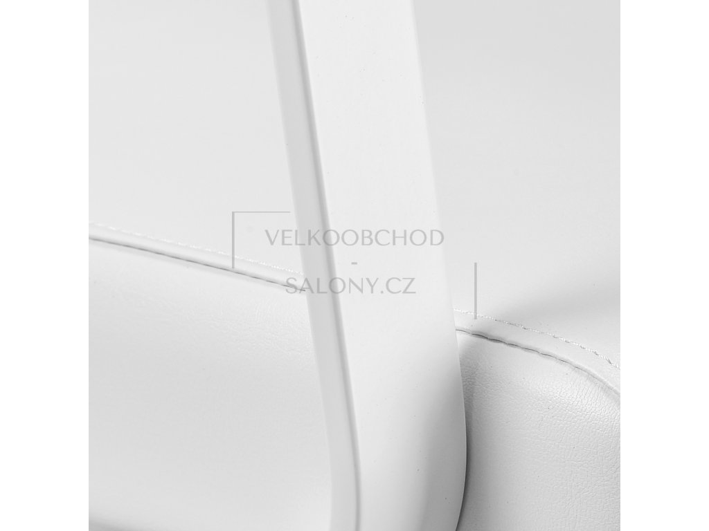 Čalounění v bílé barvě je vyrobeno z kvalitní syntetické kůže, která je příjemná na dotek, odolná proti vlhkosti a nenáročná na údržbu. Výplň z pevné pěny garantuje dlouhodobý komfort a tvarovou stálost. Kovové područky v bílé barvě a samostatný podnožník přispívají k maximálnímu pohodlí klienta.