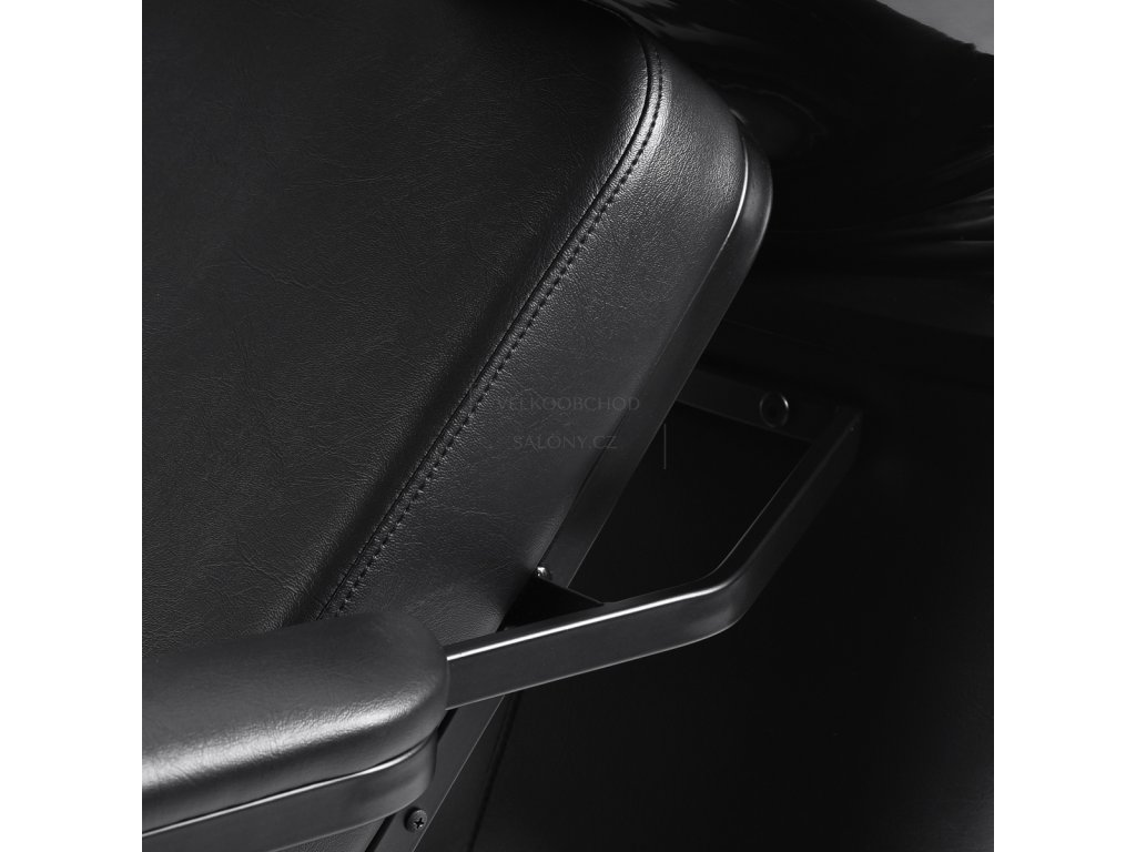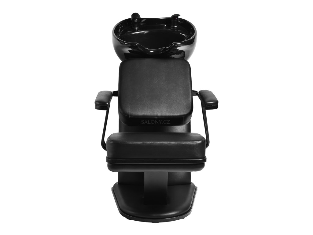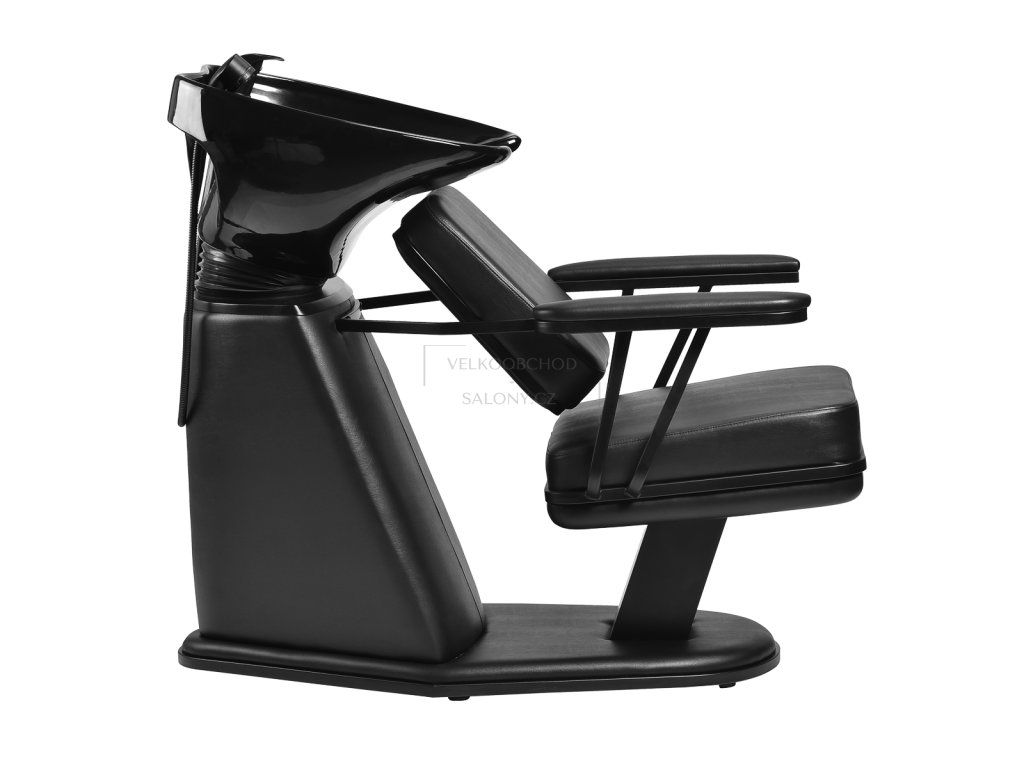 Ergonomicky tvarované křeslo poskytuje dostatečnou oporu zad a bederní oblasti. Čalouněné područky umožňují správné uložení ramen a zvyšují komfort klienta během mytí vlasů. Odolná pěnová výplň v kombinaci se syntetickou kůží v černém odstínu zajišťuje dlouhou životnost, snadnou údržbu a vysoký komfort i při intenzivním používání.