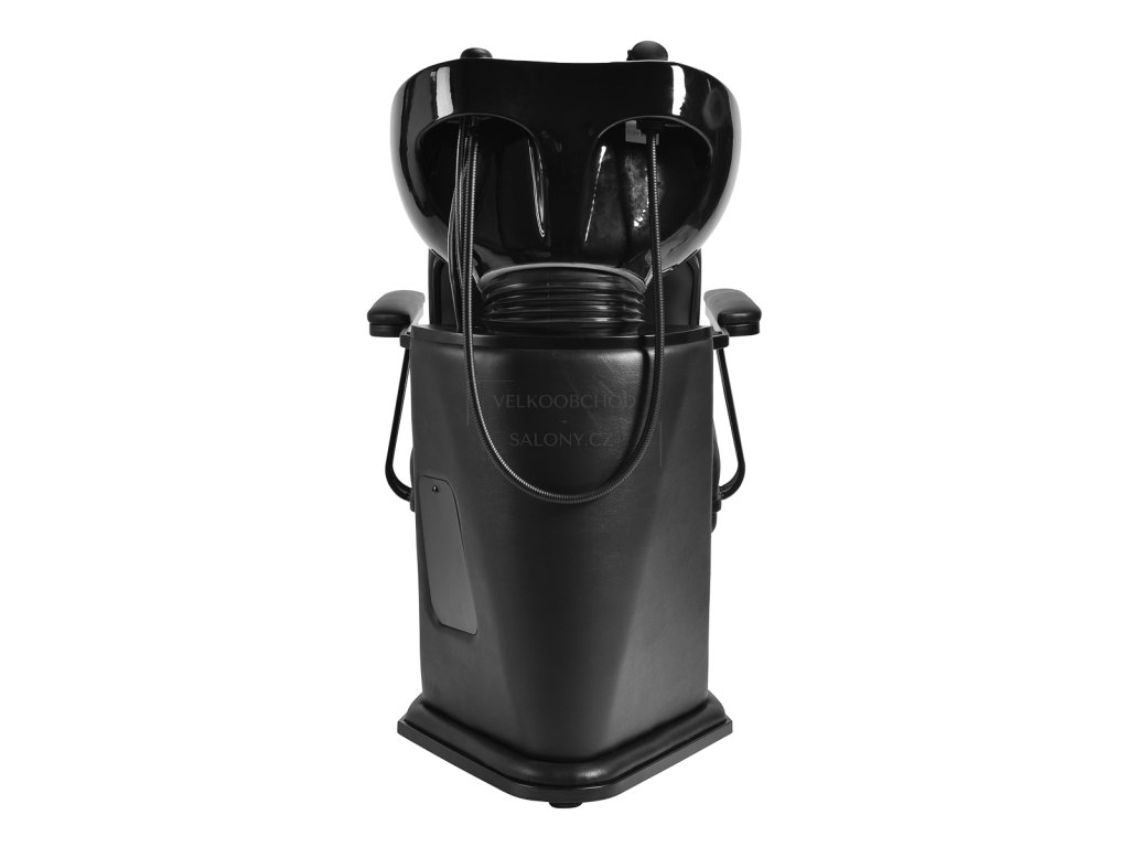 Součástí boxu je černá keramická umyvadlová mísa s optimální hloubkou, která omezuje rozstřik vody a používaných přípravků. Nastavitelný úhel sklonu umožňuje přizpůsobit polohu podle potřeb klienta i typu prováděné služby. Keramika je odolná vůči zabarvení, poškrábání a snadno se udržuje v čistotě. Ergonomicky tvarovaný límec s měkkou plastovou podložkou zajišťuje pohodlné a bezpečné opření krku bez nepříjemného chladu.