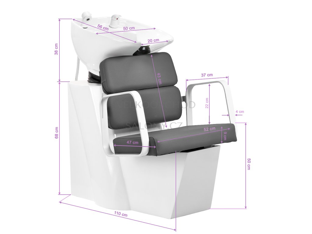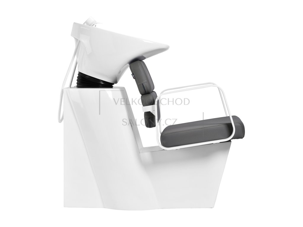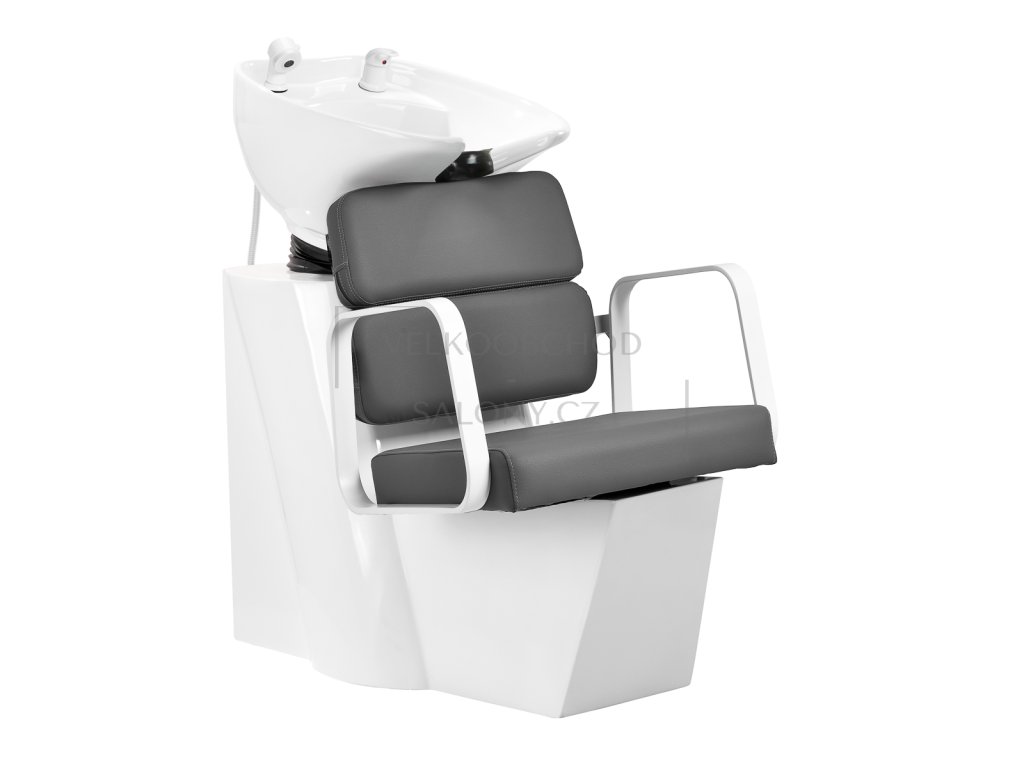 Kadeřnický mycí box Verona – bílo-šedý je elegantní a funkční řešení pro profesionální salony, které chtějí spojit komfort, praktičnost a moderní vzhled. Je ideální pro mytí vlasů, barvení i regenerační kúry a zároveň působí jako reprezentativní prvek interiéru.