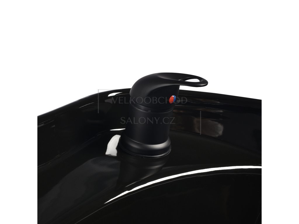 Černá keramická mísa je dostatečně hluboká, aby zabránila rozstřikování vody a vlasové kosmetiky. Díky nastavitelnému úhlu umyvadla se snadno přizpůsobí individuálním potřebám každého klienta. Povrch je odolný proti poškrábání i zabarvení a snadno se udržuje čistý.
