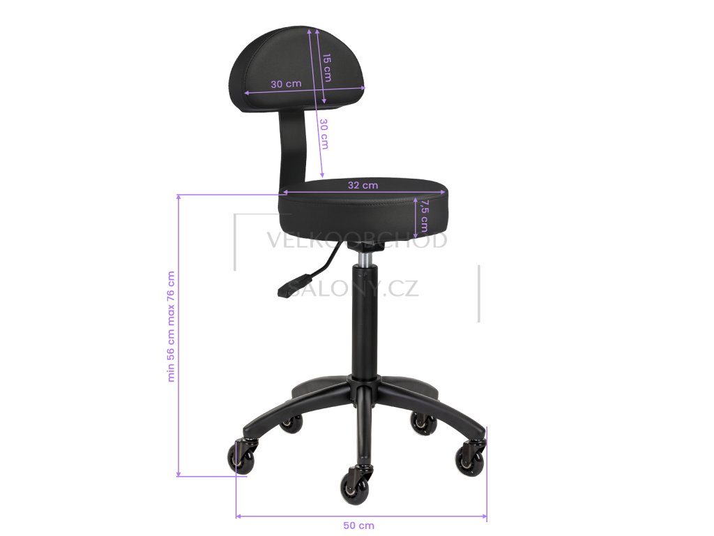 Kadeřnický taburet Comfort Plus s opěrkou – černý