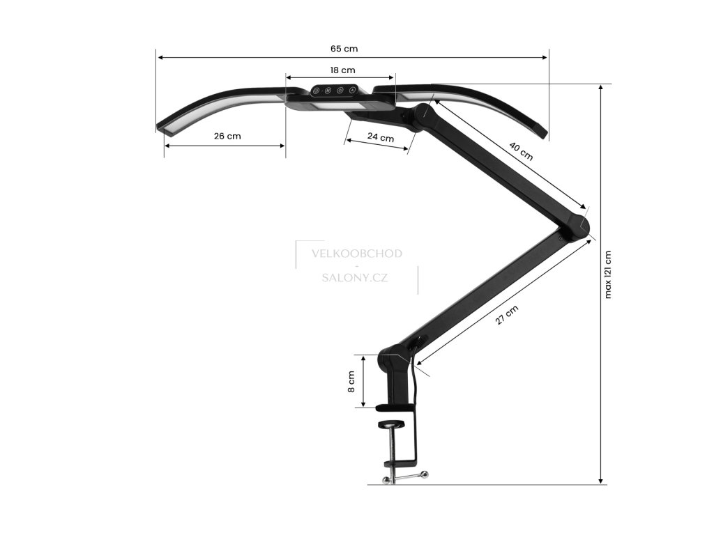Lampa se upevňuje k pracovní desce pomocí svěrného úchytu na principu imadla s maximálním rozevřením 6,3 cm. Toto řešení je stabilní, bezpečné a šetří místo na pracovní ploše, což ocení zejména profesionální salony.