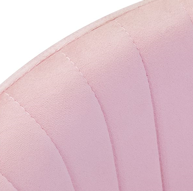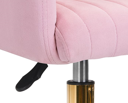 Tento kus nábytku zaujme na první pohled pečlivou povrchovou úpravou. Sametové čalounění v růžových odstínech, které je příjemné na dotek, mu dodává jedinečný charakter. Podstavec ve zlaté barvě dodává eleganci a dokonale ladí se sametem, zatímco funkční kolečka zajišťují mobilitu, takže křeslo lze snadno přemístit a pohybovat se po obývacím pokoji při práci. Estetika zpracování, pohodlí při používání, dekorativní prošívání a ergonomicky profilovaný opěrák znamenají, že židle splní požadavky i těch nejnáročnějších uživatelů.