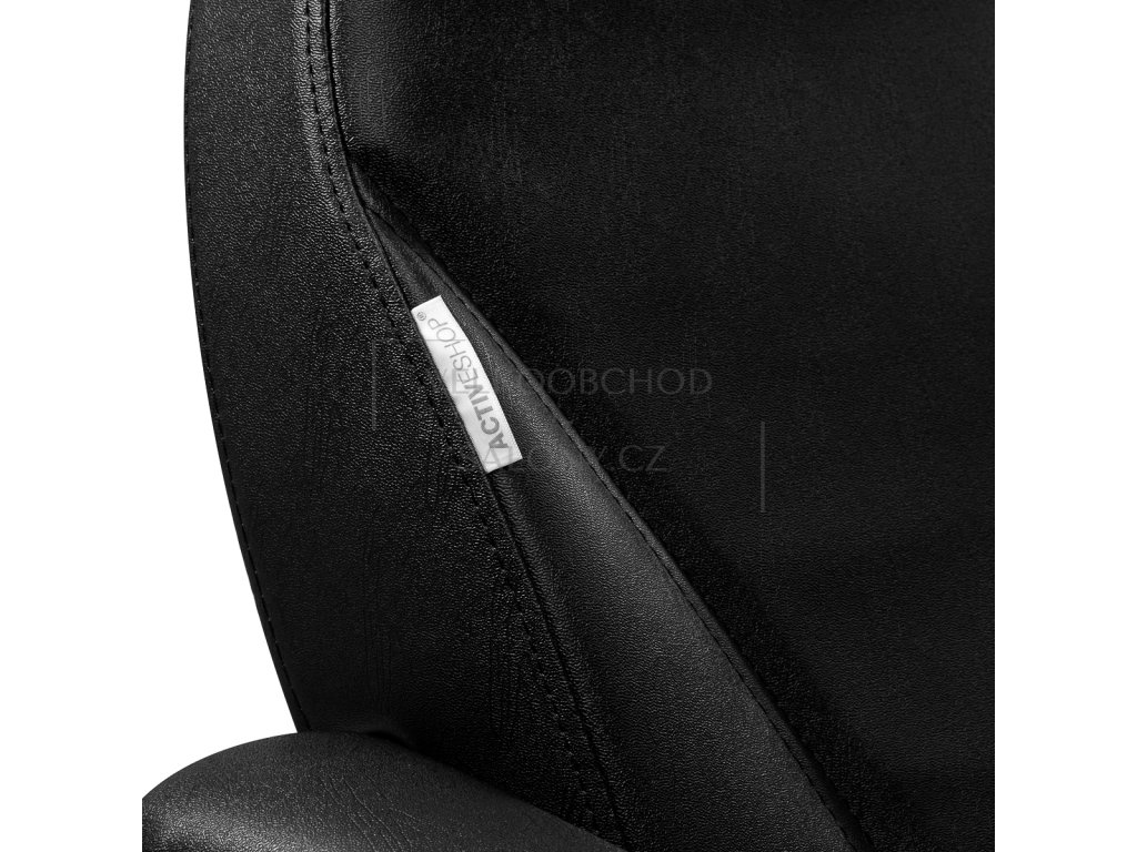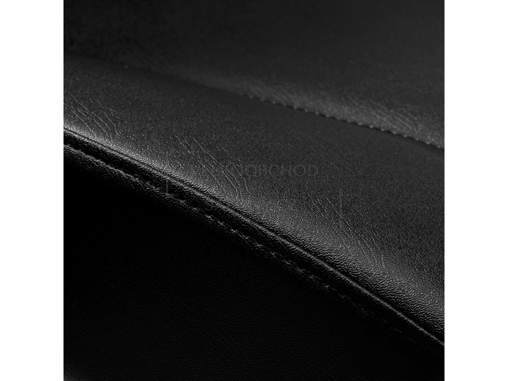 Křeslo je vyplněno pěnou a potaženo imitací kůže v černých odstínech. Díky použití tohoto materiálu je zařízenípohodlné při používání, odolné vůči vlhkosti a snadno se čistí. Správně tvarované lemy dodávají sedadlu ergonomický tvar. jednoduchý design a klasické barvy usnadňují jeho začlenění do každého interiéru.
