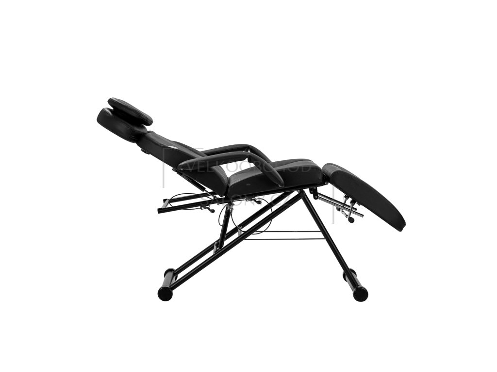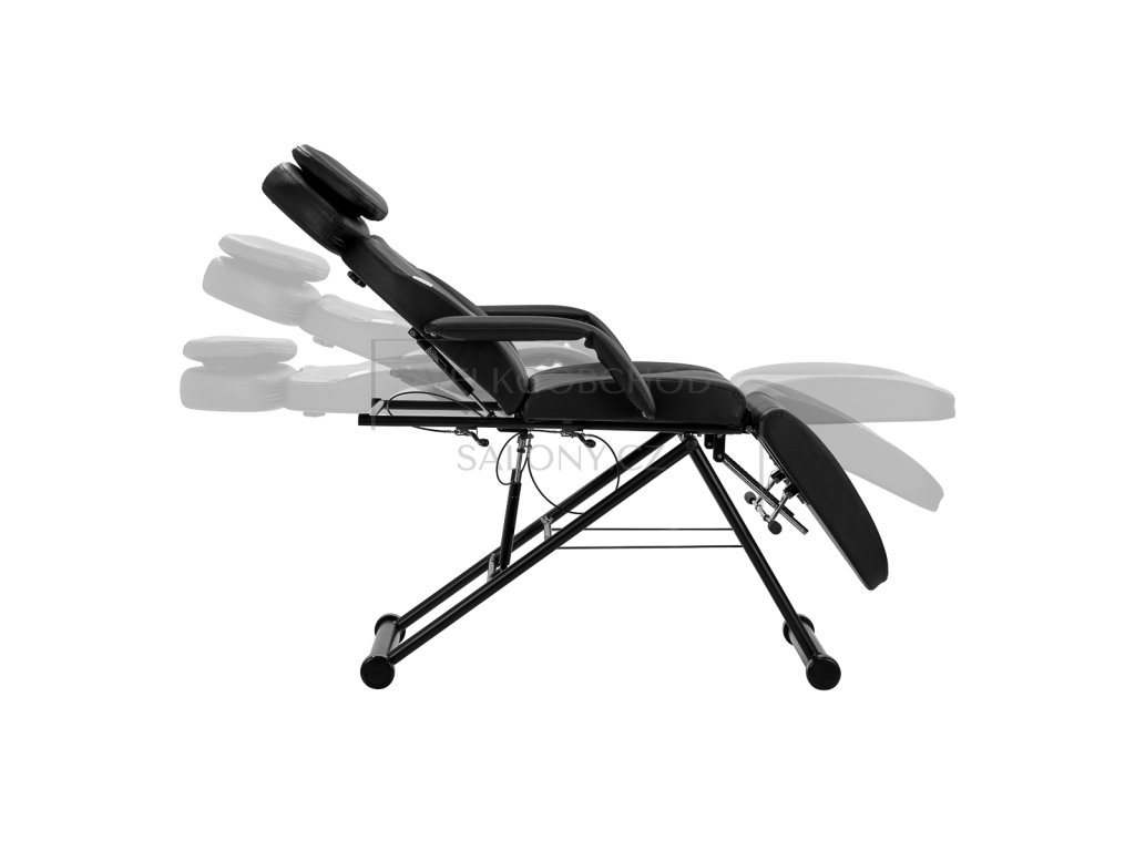 Nastavení úhlů, ve kterých se nachází opěrka nohou a opěradlo, je zajištěno speciálním mechanismem. Pomocí ručních páček můžete libovolně nastavit uspořádání sedadla. To umožňuje optimální nastavení podle individuálních potřeb , správné a pohodlné provádění procedur a vysoký komfort používání. Křeslo lze rozložit až do polohy lehátka , dosahuje maximální délky přes 2 m, což výrazně zvyšuje jeho funkčnost, a díky otvoru v opěrce hlavy poskytuje volnost při provádění ošetření obličeje a těla.