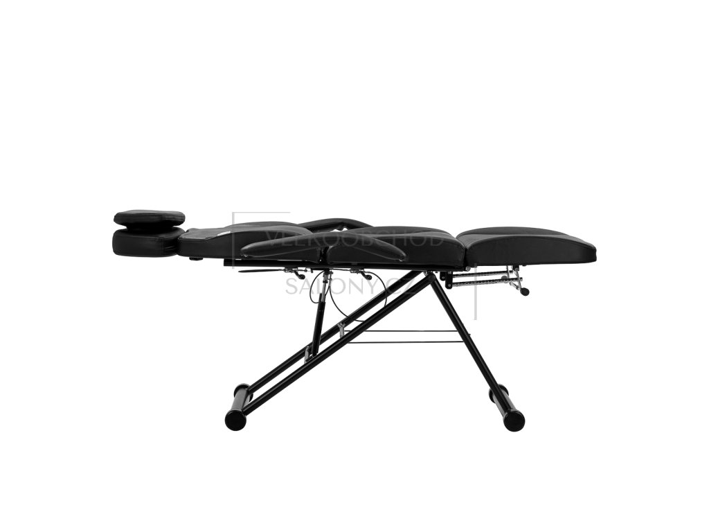 Základna sedadla má pevnou výšku, takže sedadlo je v nezměněné úrovni, což by mělo zajistit pohodlí při používání. Pevný kovový rám v odstínech černézajišťuje potřebnou stabilitu při používání . Opěrka hlavy, kterou lze prodloužit o cca 15 cm, jevynikající oporou hlavy bez ohledu na výšku zákazníka. To umožňuje volně provádět různé procedury , včetně kosmetických, fyzioterapeutických nebo tetovacích.