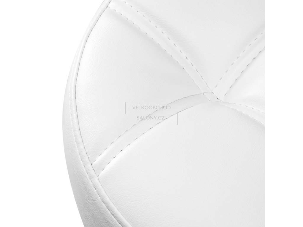 Sedák je potažen kvalitní syntetickou kůží v bílém odstínu, která je příjemná na dotek, odolná vůči opotřebení a snadno se udržuje v čistotě. Dekorativní prošívání podtrhuje elegantní vzhled taburetu a zdůrazňuje jeho profesionální charakter.