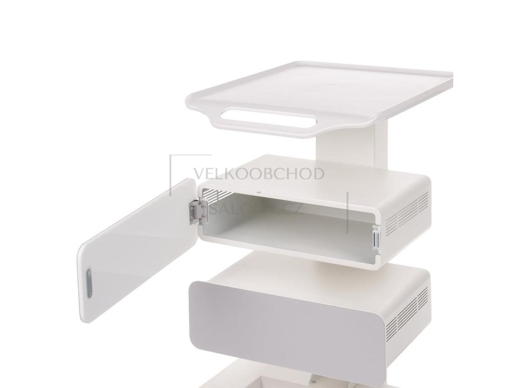Mobilní kosmetický vozík na kolečkách BR-1889 je nepostradatelným pomocníkem v každodenním provozu kosmetických salonů, SPA center i estetických klinik. Spojuje funkčnost, praktičnost a moderní design, díky čemuž zajišťuje pohodlí při práci a přehledné uspořádání pomůcek.