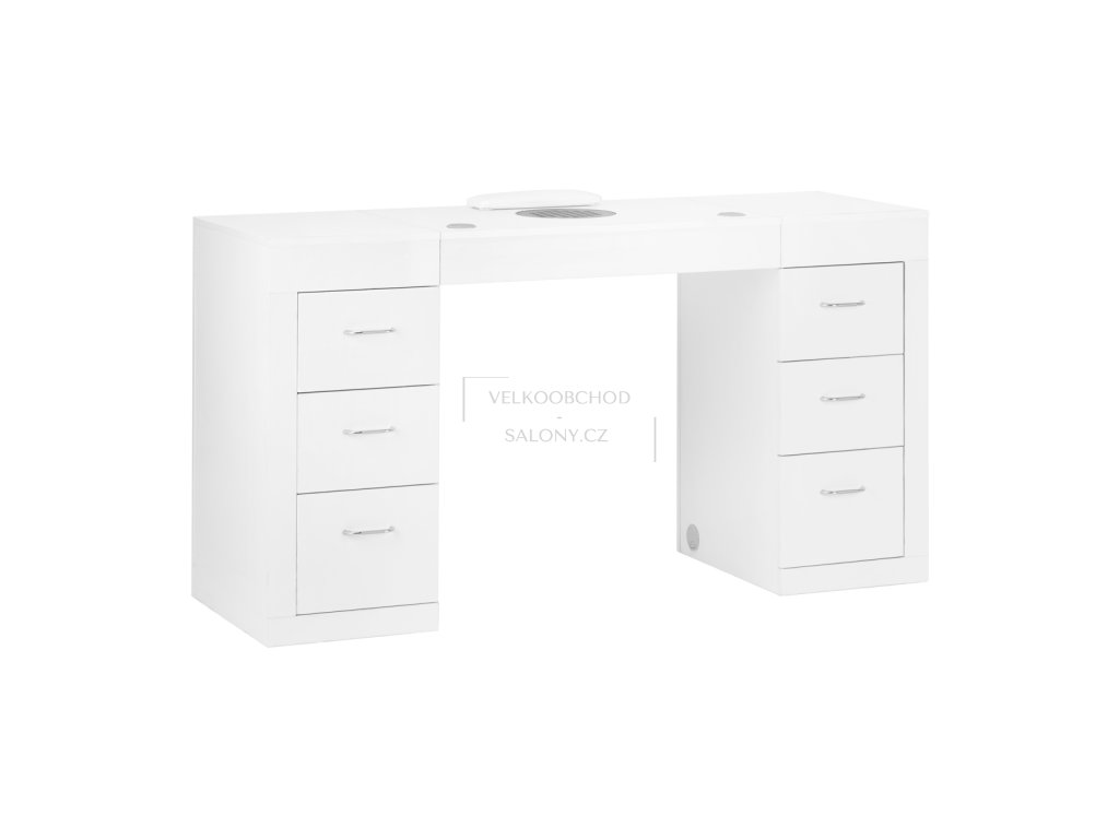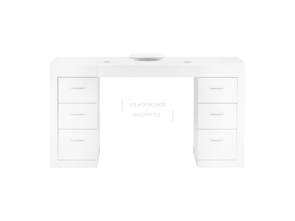 Součástí pracovní desky je výkonný kazetový odsavač prachu, který účinně zachytává jemný prach vznikající při manikúře a modeláži nehtů. Díky odsávání zůstává pracovní plocha čistá a vzduch v salonu méně zatížený prachovými částicemi, což zvyšuje komfort práce i bezpečnost klientů. Odsavač je snadno přístupný a umožňuje rychlou výměnu kazetového filtru.