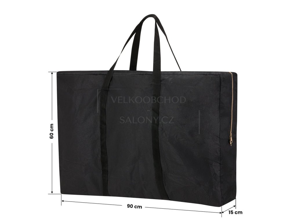 Součástí vybavení je ergonomický podhlavník s možností nastavení úhlu, otvor na obličej, přední police pod ramena i boční područky. Díky tomu lze klienta pohodlně uložit v jakékoliv pracovní poloze. Pro mobilní použití je lehátko vybaveno transportní taškou s ramenním popruhem, která usnadňuje přenášení a chrání lehátko před znečištěním a poškozením.