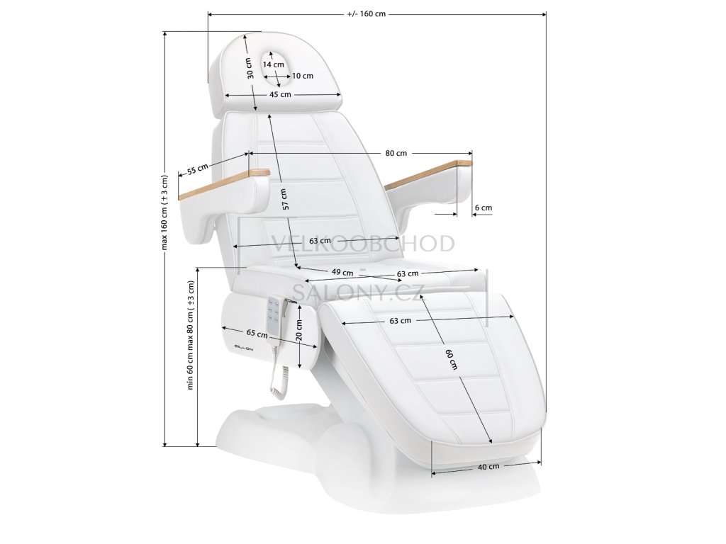 OUTLET-Elektrické kosmetické křeslo Sillon LUX 3motory, BÍLÉ