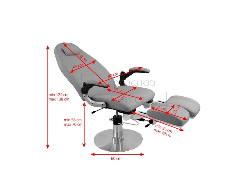 Moderní kosmetické křeslo, které poskytuje pohodlí během léčby nejen pacientům, ale i osobám provádějícím zákrok. Křesla jsou odolná a velmi stabilní. Díky zvednutým područkám se zákazníkovi sedí na sedadle snadněji. Nastavením stupaček můžete židli dodatečně přizpůsobit podle individuálních potřeb. Čalounění z vysoce kvalitní ekokože. Moderní design a funkčnost v jednom.