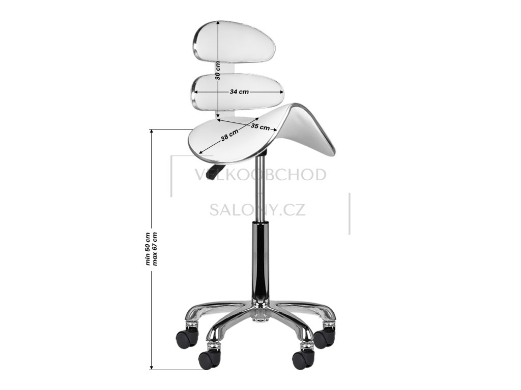 Pohodlný a stabilní kosmetický taburet s tvarovaným sedákem a ergonomickým opěradlem. Namontován na pětihvězdičkovém podstavci s kvalitní gumou a kolečky Roll Speed s kuličkovými ložisky, které zaručují snadný a plynulý pohyb.