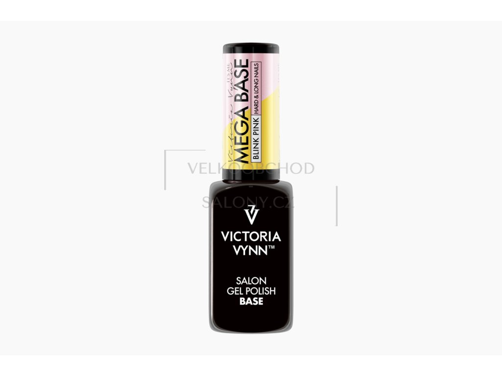 „Mega Base Blink Pink“ od značky Victoria Vynn (8 ml) je vysoce kvalitní barevná baza s jemným růžovým tónem a drobnými třpytkami. Má samovyrovnávací, hustou konzistenci, která se nevylévá a dobře vyplní nerovnosti přírodní nehtové ploténky. Produkt nabízí krytí přibližně 50 % a zároveň zpevňuje nehet a zajišťuje dlouhodobou odolnost a pružnost manikúry.