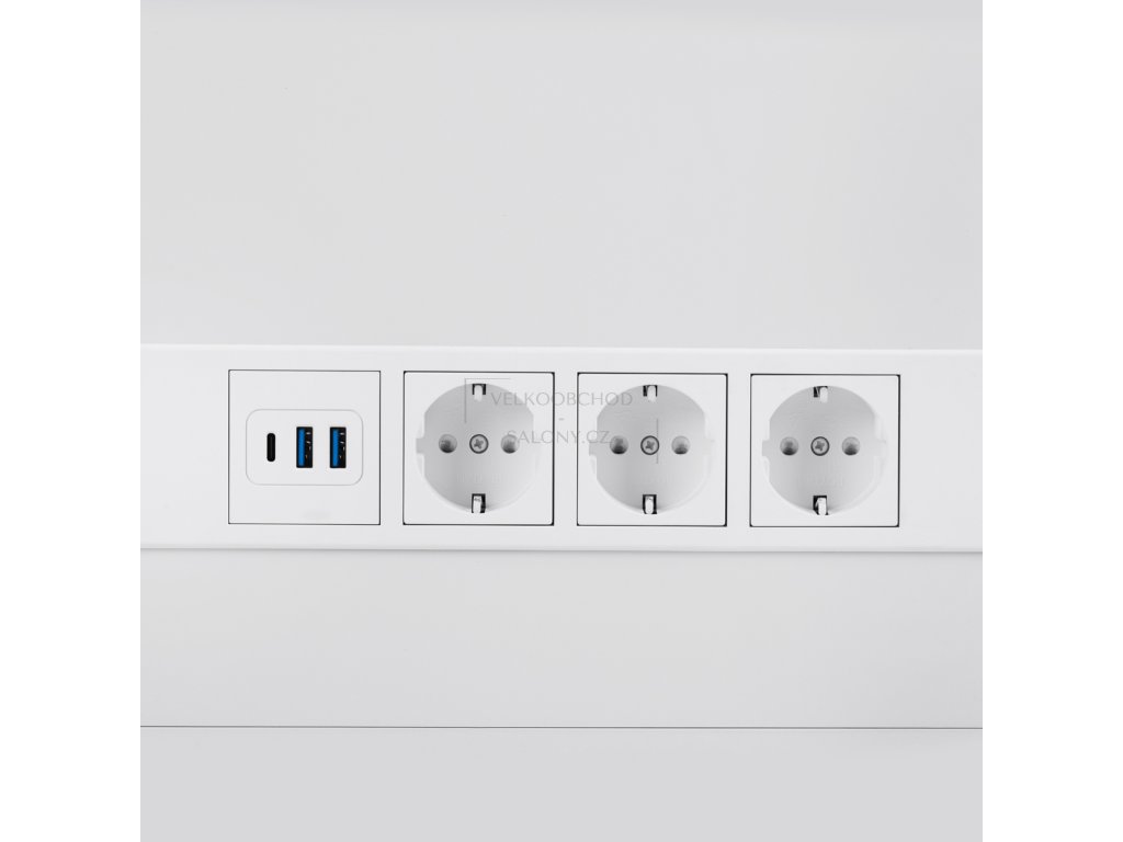 Elektrické přípojky: 3× 230 V, 2× USB, 1× USB-C