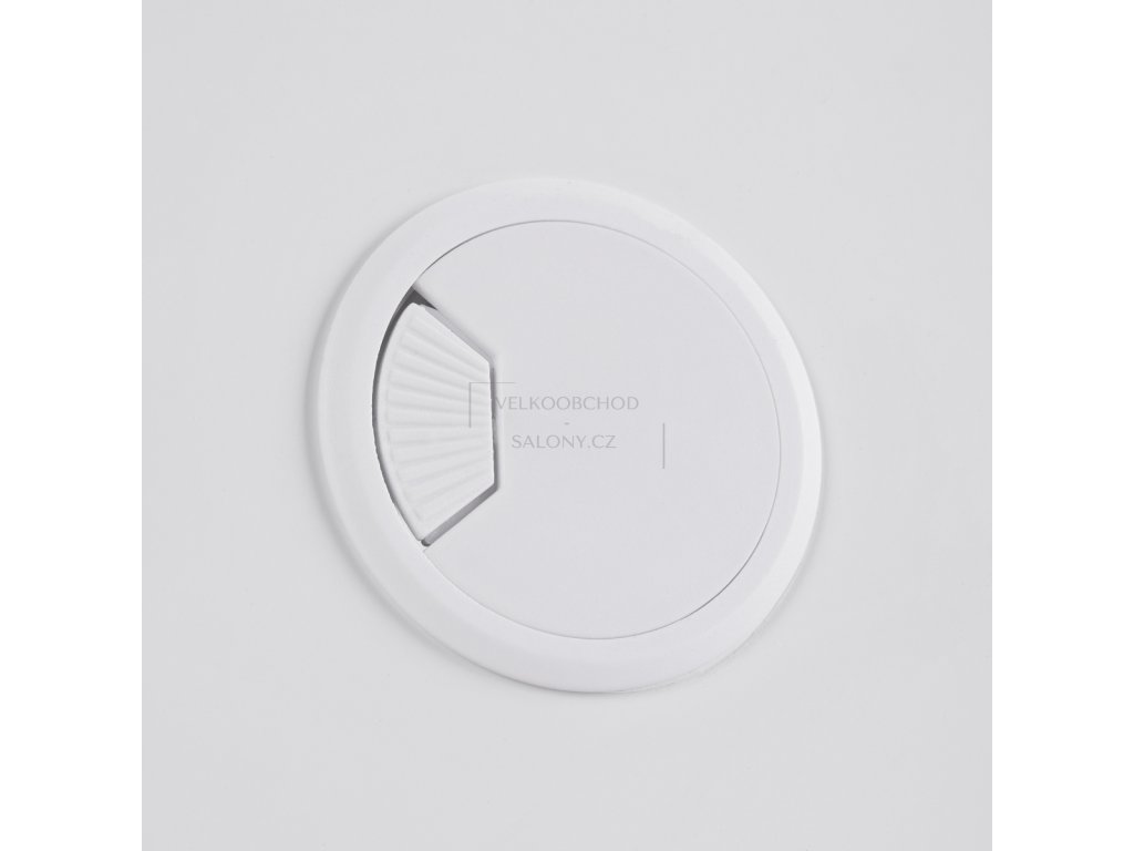 Horní otevřená zásuvka je výškově uzpůsobena pro umístění zařízení, jako je podologická bruska s odsáváním, čímž se pomocník stává plnohodnotnou součástí pracovního stanoviště. Průchodky na kabely v bočních stěnách pomáhají udržet čistý a uspořádaný pracovní prostor bez zamotaných kabelů.