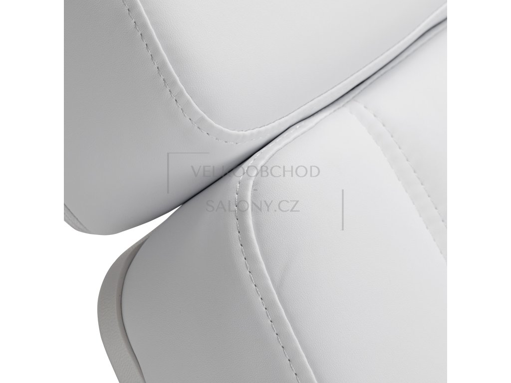 Robustní konstrukce křesla zajišťuje stabilitu a odolnost při každodenním používání. Sedák vyplněný pěnou s vhodně zvolenou tvrdostí zaručuje pohodlí i při dlouhodobých procedurách. Potah z vysoce kvalitní, příjemné na dotek imitace kůže v odstínech bílé barvy dodává celku profesionální vzhled a zároveň je odolný proti vlhkosti a snadno se udržuje v čistotě. Odolná základna zaručuje stabilitu a precizní zpracování podtrhuje moderní charakter křesla a zvyšuje ergonomii sedáku.