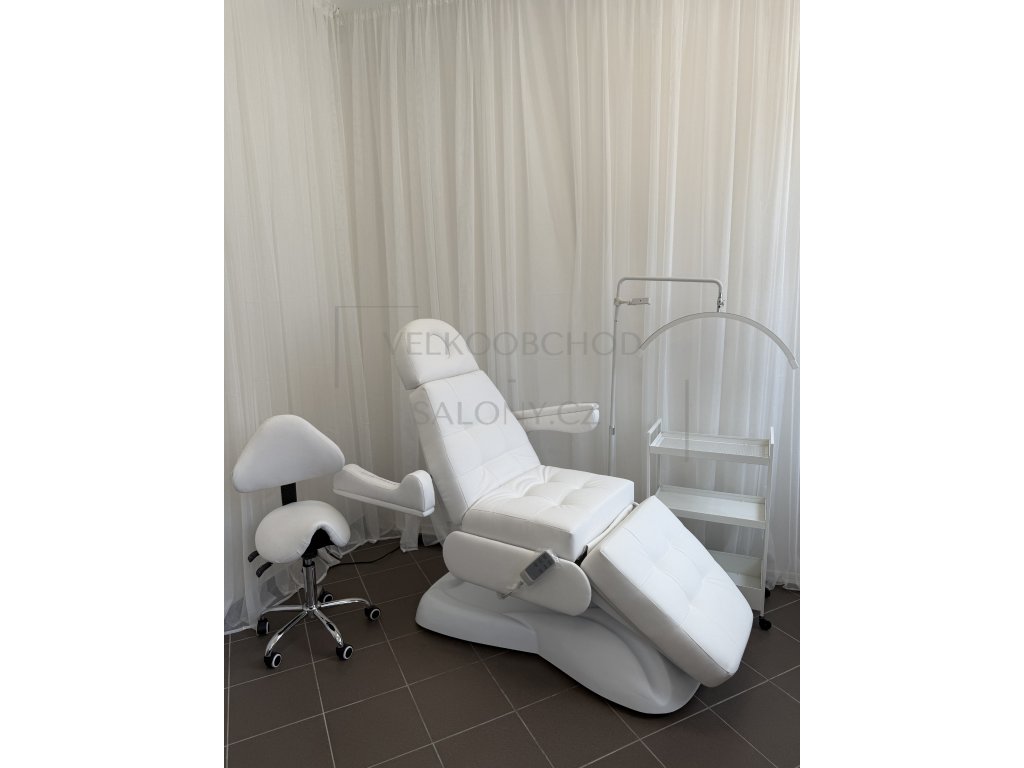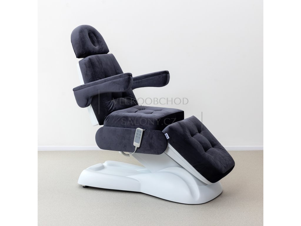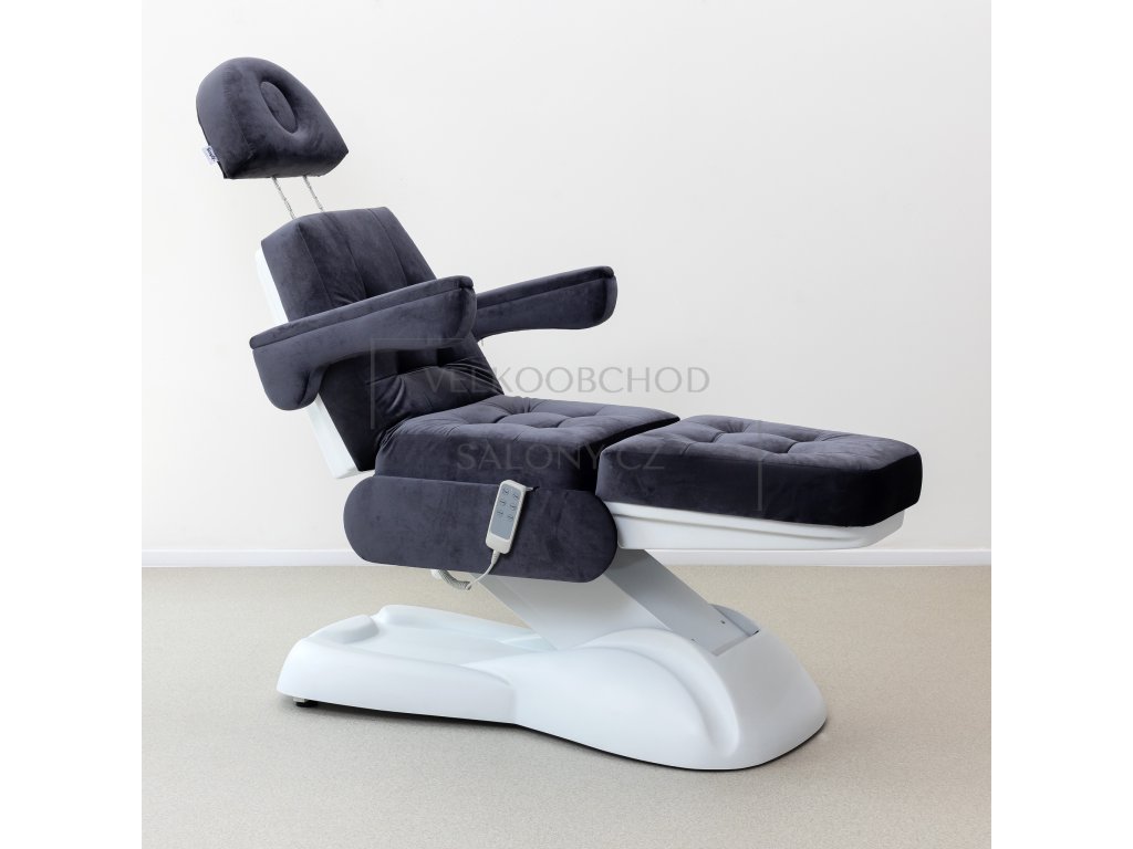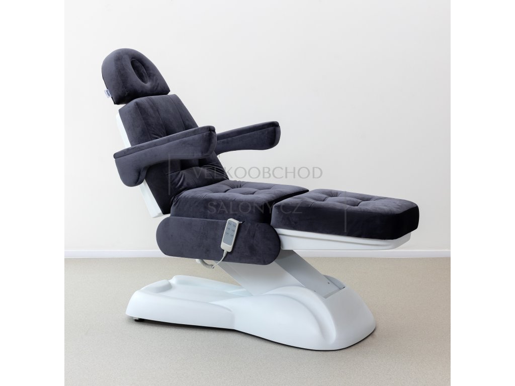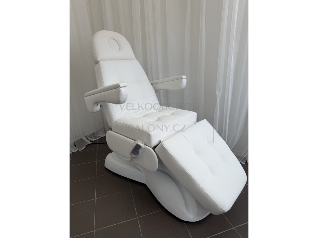 Kosmetické lehátko je 3 motorové. Pomocí ovladače lze u lehátka nastavit - výška, zádová a nožní opěrka.