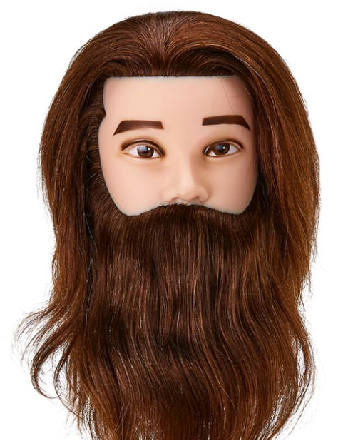 Tréninková hlava barber s vousy, přírodní vlasy, Gabbiano WZ4 barva 4H, délka 8"+6"