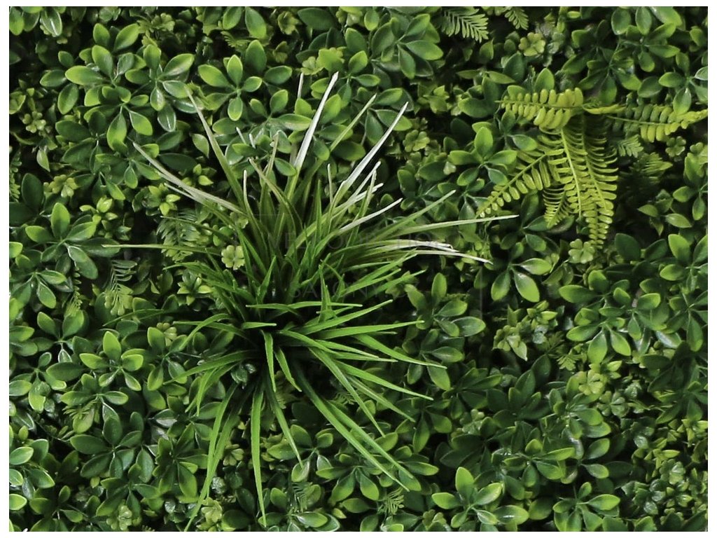 Tento kapkovitý stín dodává stěně z živého plotu Jungle velmi přírodní vzhled. Po instalaci tohoto uměleckého plotu Jungle navíc nemusíte provádět žádnou další údržbu. Instalace je velmi snadná, stačí k sobě přiložit podložky o rozměrech100x100 cm. Můžete tak spárovat libovolné rozměry plochy a stříhat je na míru pomocí domácích nůžek.