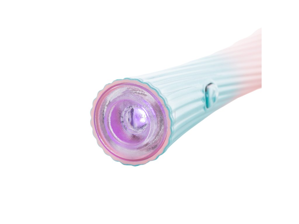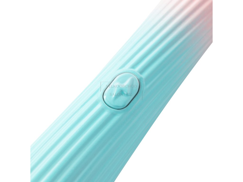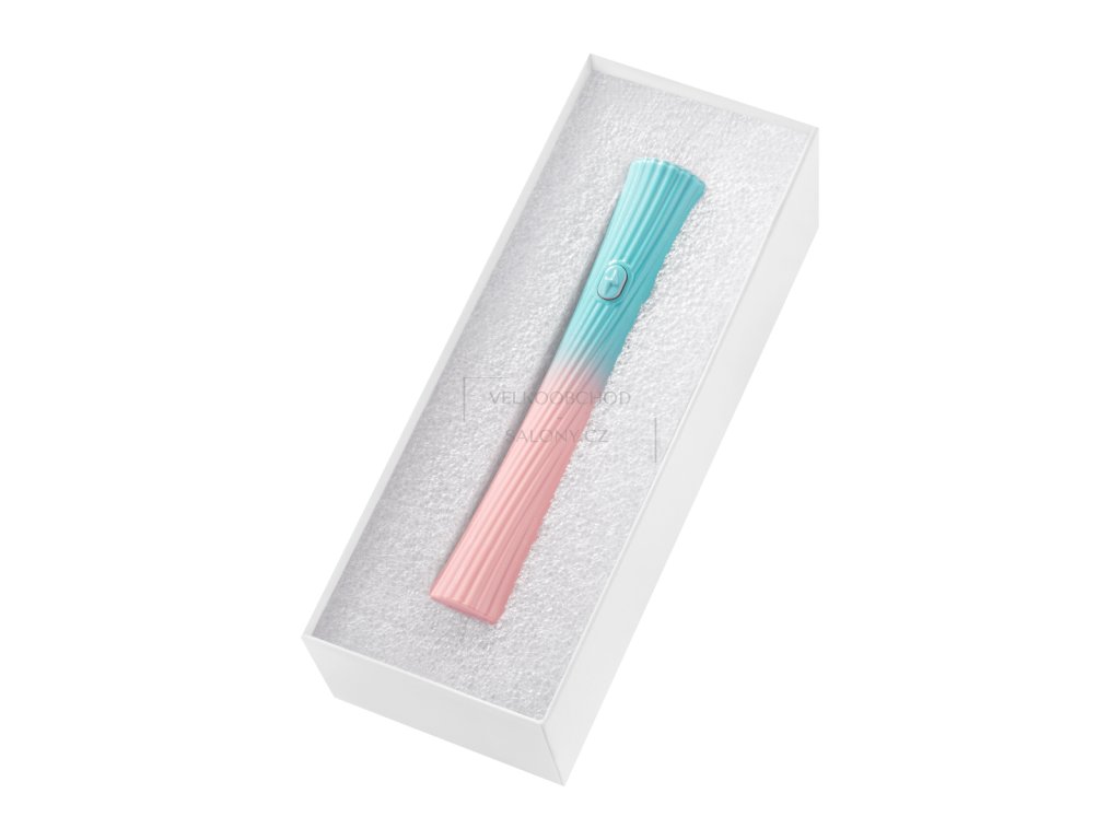 Štíhlý podlouhlý tvar a rýhovaný povrch zajišťují jistý úchop. Barevný přechod v odstínech tyrkysové a pastelově růžové dodává lampě moderní a lehký vzhled.