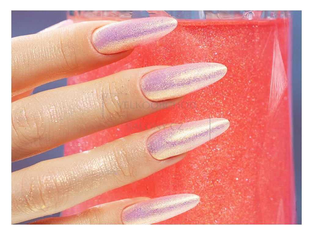 Gel lak 372 Princessa přináší půvabnou kombinaci růžové barvy s jemnými zlatými částicemi, které se při dopadu světla rozsvítí a rozšíří působivý efekt. Tento odstín vypadá krásně samostatně, ale také efektně v kombinaci s dalšími barvami, zvýrazněními nebo gelovými efekty.