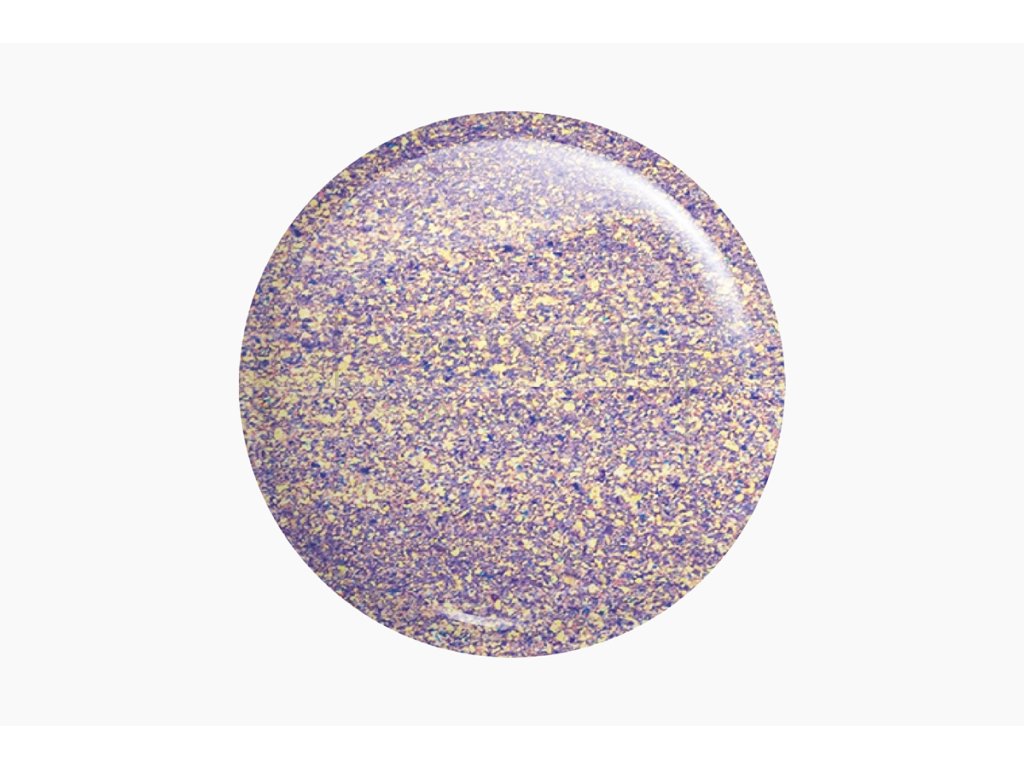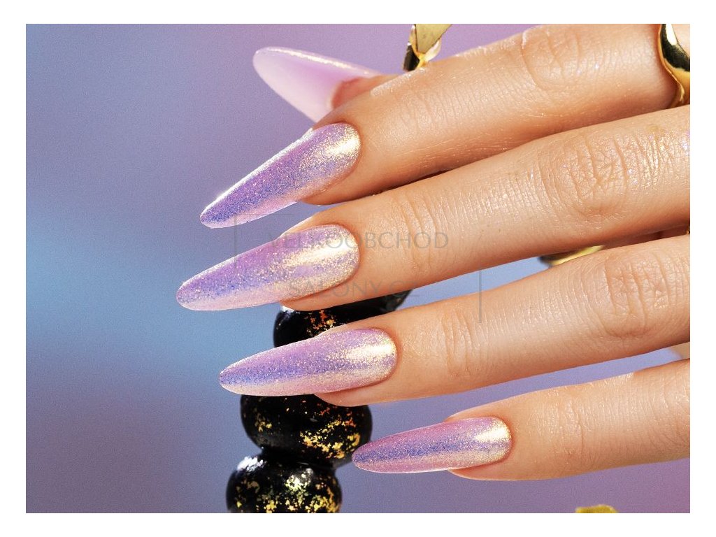 Gel lak 373 Bella ze série Brocaciello je charakterizován zlatým podkladem s množstvím jemných částic doplněných fialovými akcenty. Pod světlem se tyto částice zatahuji a vytvářejí bohatý, třpytivý efekt, který zaujme hloubkou a pohybem barvy.